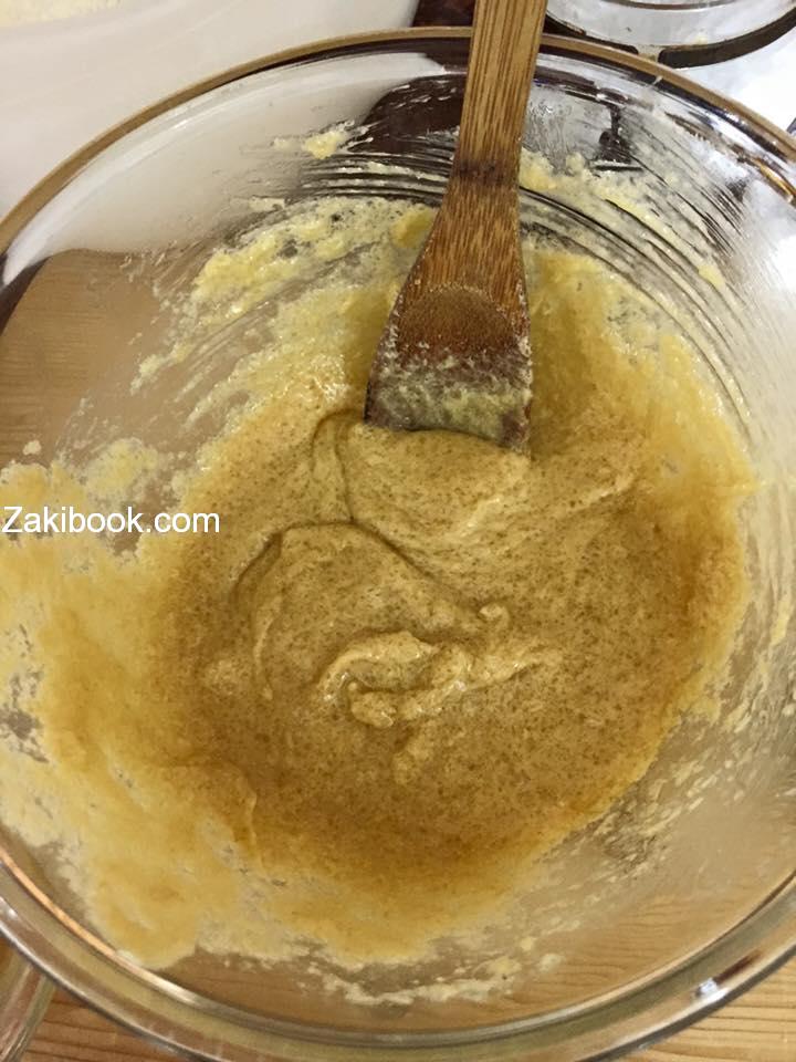 اخلطي الزبده والسكر لحد ما يتجانسو.
