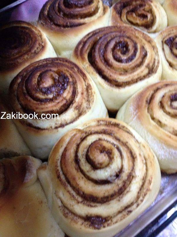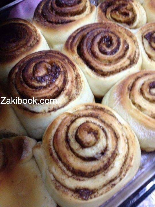 يعمل حفره في وسط العجين تضاف الزبده ويفرك بها العجين ثم يضاف البيض المخفوق مع الفانيلا ثم الخميره المذابه ونبداء العجن بما تبقى من الحليب السائل او البودره المذاب باالماء تعجن جيدا نتركها ترتاح تم تقطع قرصين او ثلاثه حسب كميه العجين نتركها ترتاح قليلا تفرد العجينه تدهن بزبده اللورباك ترش بالسكر البني والقرفه تدق كميه من البيكان او الجوز وتفرد فوق الزبده والسكر والقرفه تلف على شكل اسطوانه تقطع دوائر بارتفاع 5سم تدهن صينيه بايركس بالزبد وتصف قطع السينابون اهم شي تترك لتتخمر وترتاح نصف ساعه تدهن بخليط من البيض والسكر والزبده وتخبز حتى تشقر اخرجيها من الفرن ودعيها ترتاح.