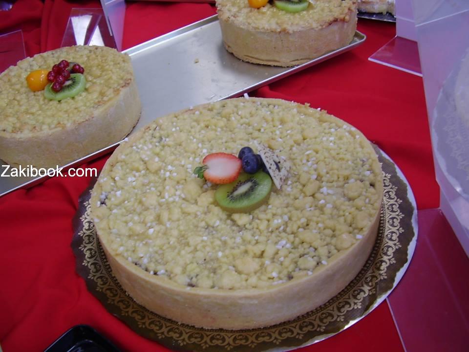 – وبالنهايه نضع الفستق المفروم مع السكر الناعم, وهي عبارة عن فول سودانى مبلل ومحمص عشان لونه مايغيرش, ونضعه فوق القشطه ومن ثم نزينه بالسكر مطحون.