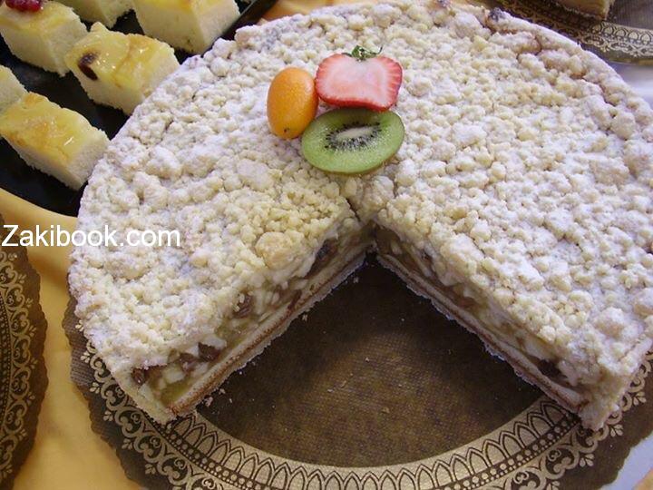 – ثم نضع طبقه الجيلو مع التفاح ثم طبقه القشطه.