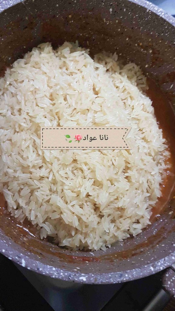 فوق الرز الى ان ينغمر ونتركه نص ساعه تقريبا لما يستوي تمام