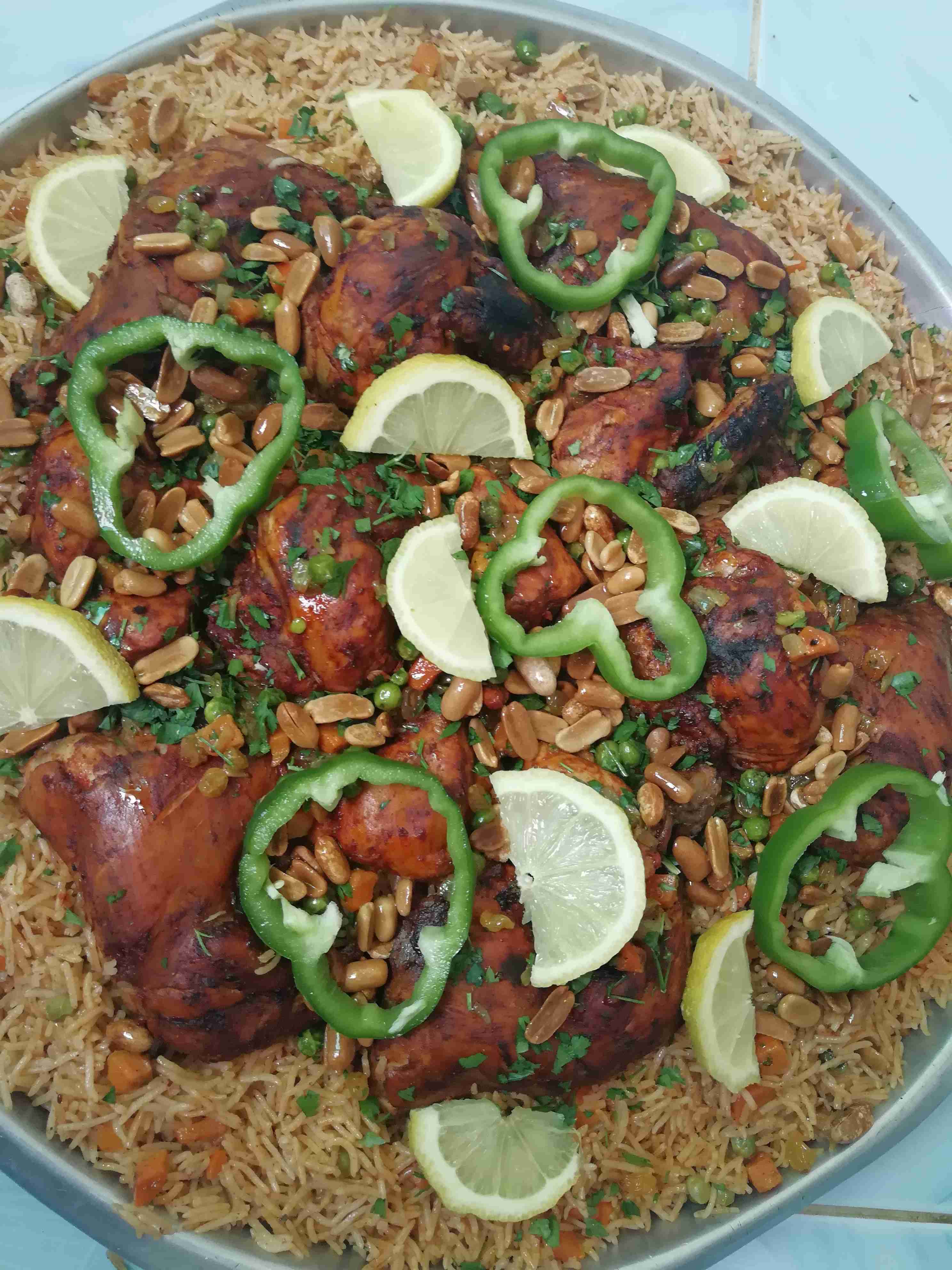 نقطع الدجاج وننظفه نضع في الطنجره البصل والثوم والزيت ونضيف الدجاج والبهارات ونشوحهم شوي نضيف الماء والصلصه ونخليهم لحتى يستوي الدجاج بهذا الوقت نكون ناقعين الرز ونضيف عليها الجزر والبازيلا نشيل الدجاج ونضيف عليها التتبيله ونحمرهم بالفرن ونضيف الرز ع مرقه الدجاج لحتى يستوي ونطبقهم ع بعض