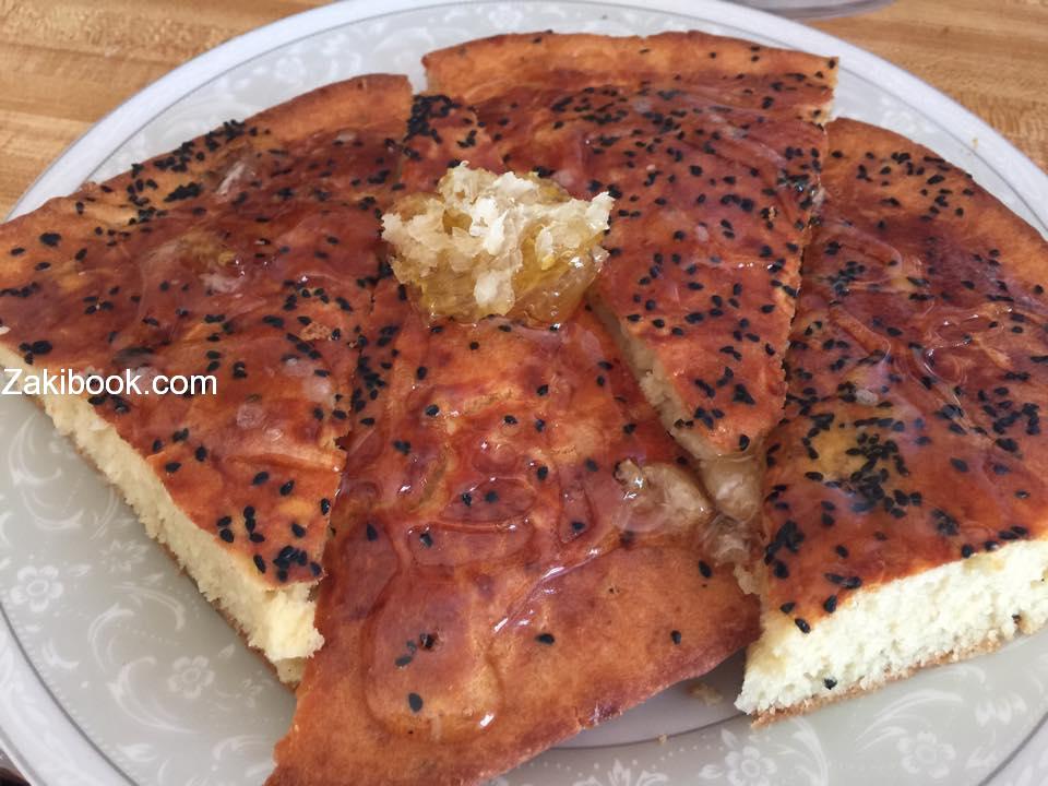 – ناخذ صينية الخبز الي بنعمل فيه ندهنه زبده بعدين رشه دقيق وا نصب الخليط فيه و يكون الفرن حامي لدرجة 450 (180 مئوية) و بعدين ناخذ صفار بيضتين وا ندهن الوجه بلطف بحكم ان العجين شبه سائله و نرش على الوجه سمسم و حبه البركة و ندخلها الفرن لمدة 30 دقيقة على الرف الشبكي الاوسط, وصحة علئ قلبكم يارب و بعدين نرش عليها العسل وتقدم.