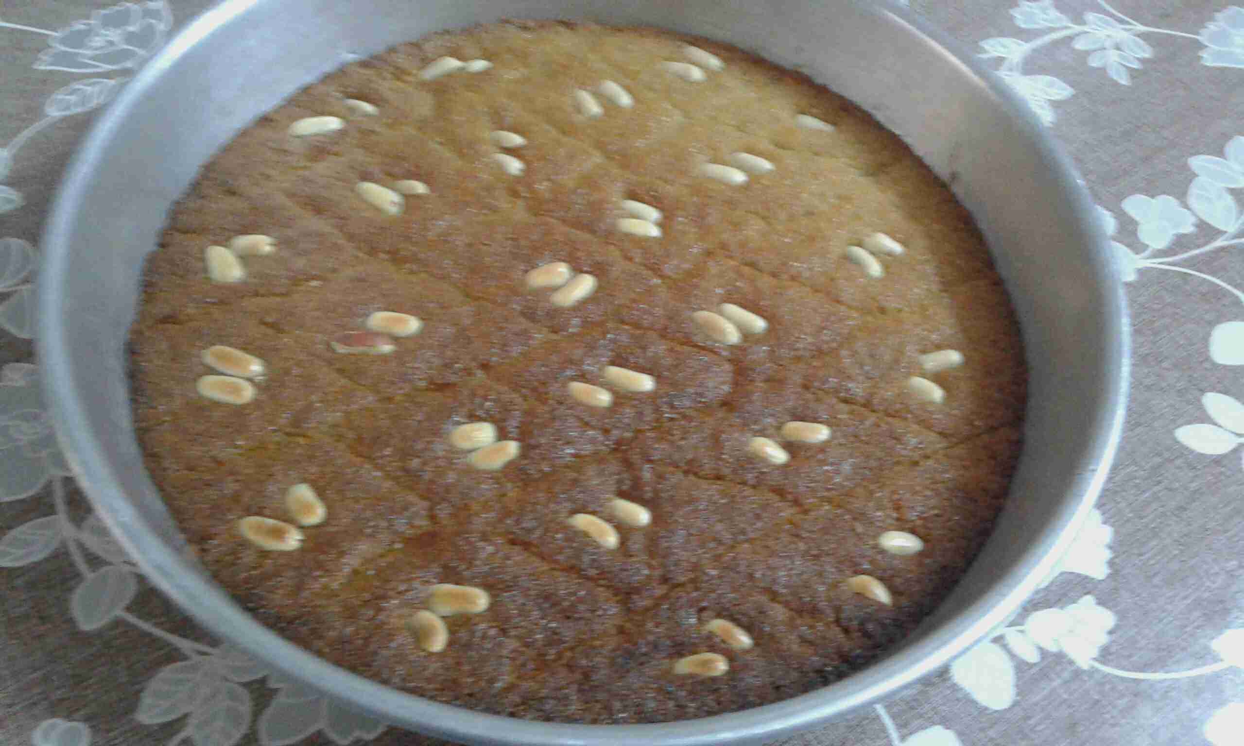 بحضر وعاء للعجن بضع فيه السميد والطحين وجوز الهند والبكنج باودر والكربونه وبفركهم بالسمنه بتركهم خمس دقايق وبعدين بضيف الحليب المحلول بالماء الدافىء شوي شوي مع الفرك بروس الاصابع حتى احصل على عجينه متماسكه وسهلة وبكون حضرت الصينيه ودهنتها بالزيت او السمنه بصب فيها الخليط وبزينو بالفستق وبحطو.بفرن محمى مسبق على درجة حراره 180