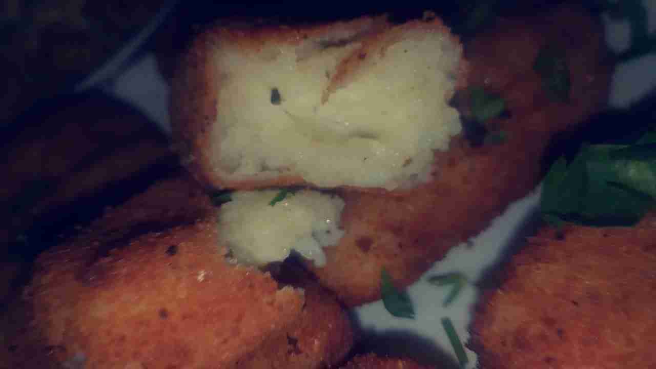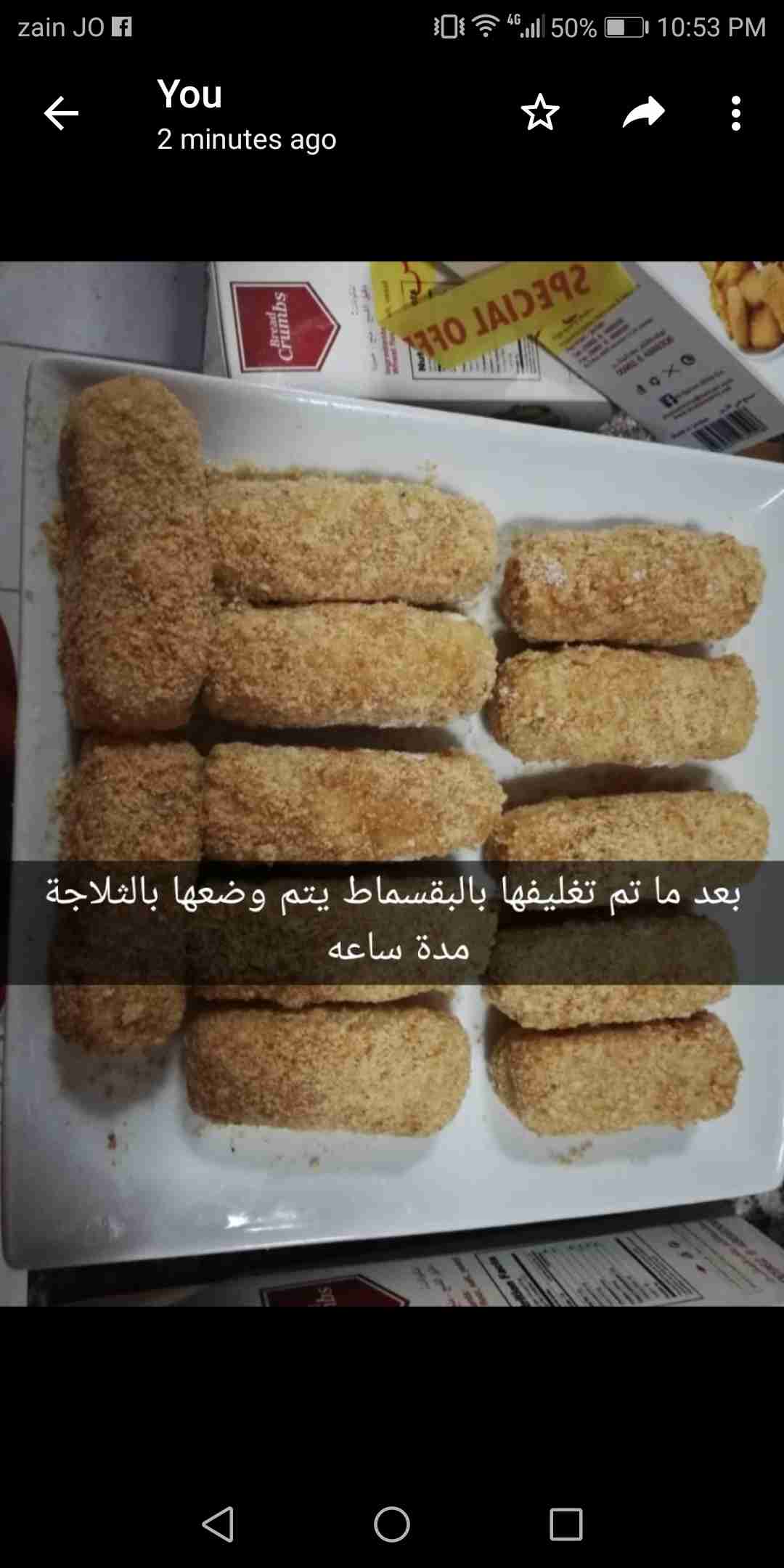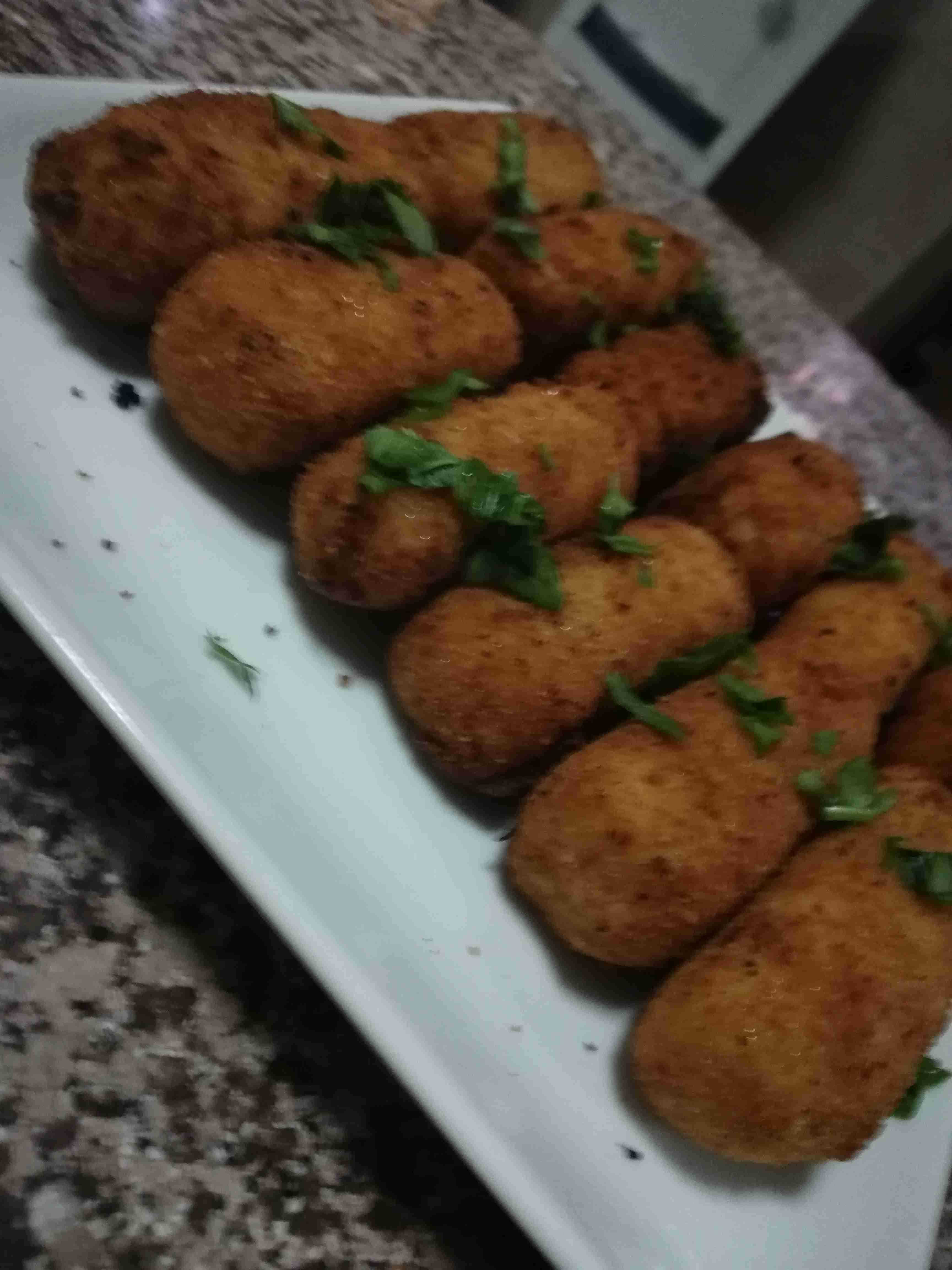 ثم يتم وضعها بالثلاجة مدة ساعه بعد إخراجها من الثلاجه يتم تغميسها بالطحين ثم البيض ثم بالبقسماط وتغليفها بالبقسماط وارجاعها الثلاجه مدة ساعه قبل القلي