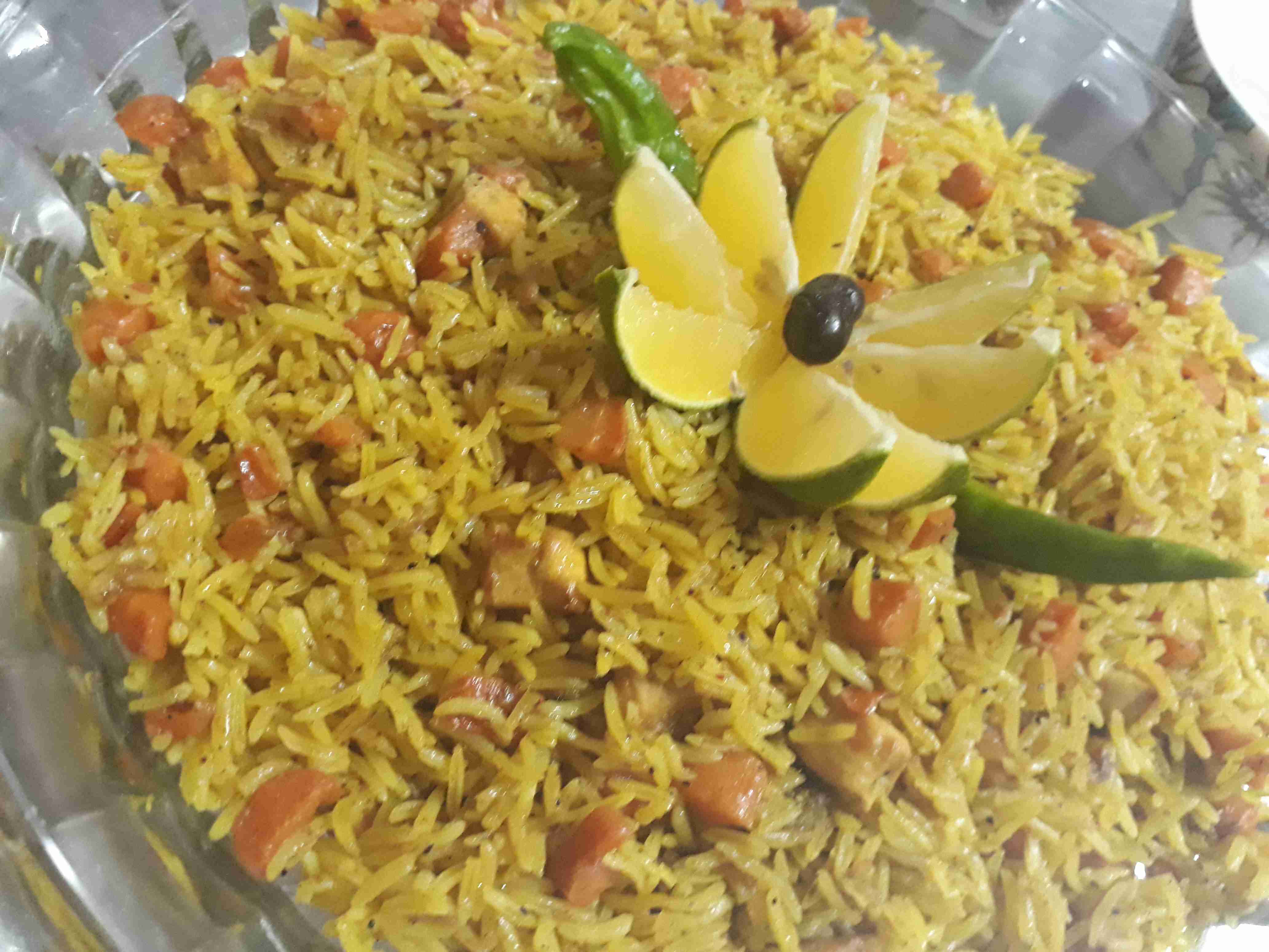 أغسل الجزر جيدا وأقشره…أسلقه الى ان ينضج وأقطعه مكعبات متوسطة الحجم….أقطع البصل جوانح وأشوحه بالزيت الى ان يشقر لونه ثم أضيفله الدجاج بعدما قطعته قطع متوسطة الحجم وأقلبه جيدا الى ان ينضج…..