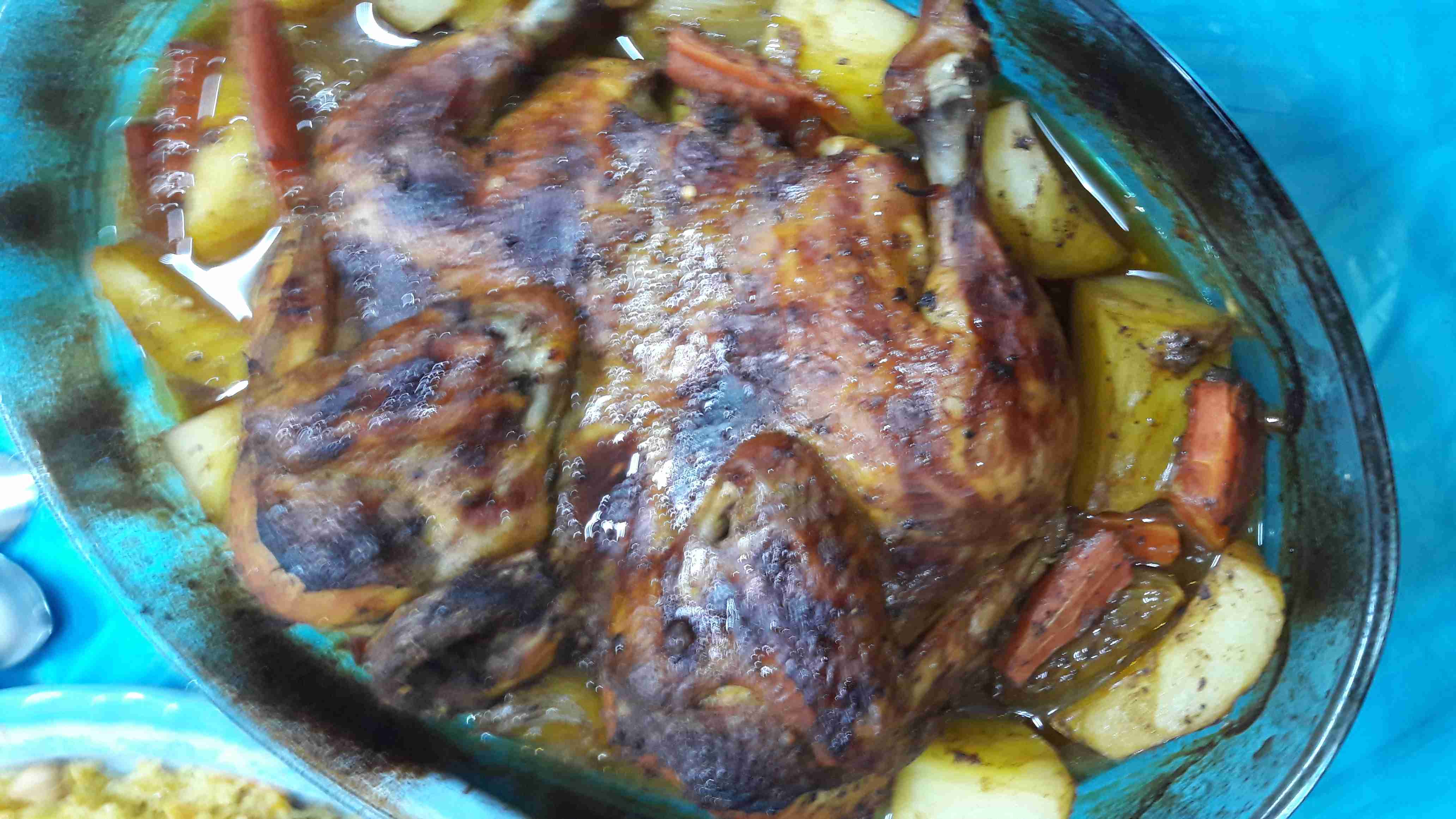 - دجاجة كاملة مفتوحة من النص منظفة بملح وخل وليمون