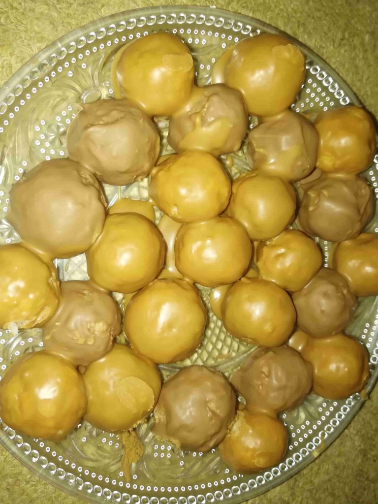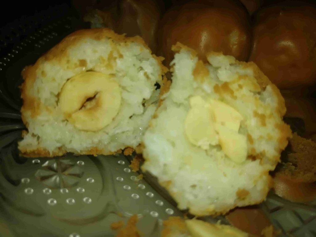 كرات جوز الهند محشيه بندق ومغطاه بالشوكولاته واللوتس
