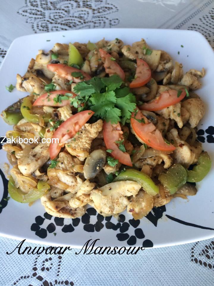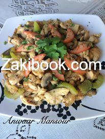 – وفي نفس المقلاة نضيف ملعقة اكل زيت نباتي وتشوح الخضرة بها مع اضافة ملح وفلفل اسود الى ان تنضج نرجع نضيفلها الدجاج وتخلط مع بعض لثواني.