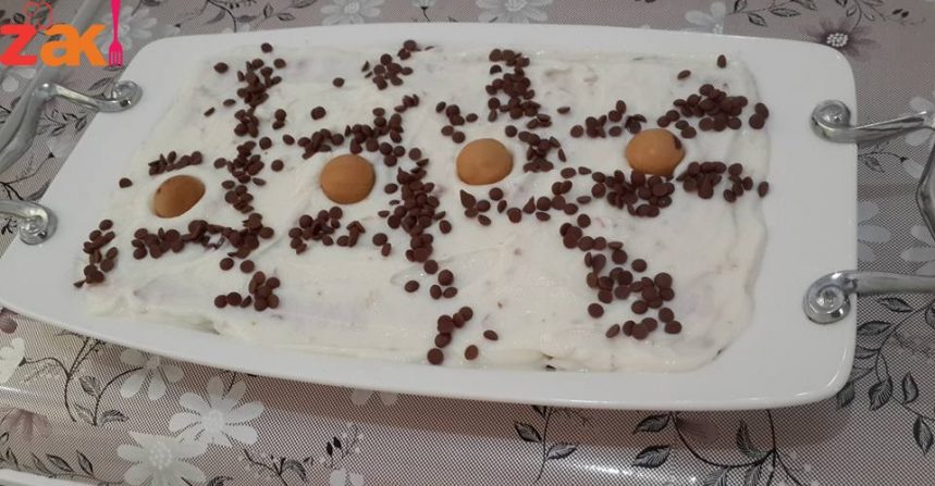باكيت بسكويت سادة خليته واحد واحد في حليب ساءل دي طبقة وعملت كاكاو وحليب ومياه وسكر ونشاء على نار لحد مااصبح كريمة لما برد خليته على طبقة اولى كملت العملية بسكويت تاني وبعدين جبت كريم شانتي خفقته مع مياه بارد وشوية حليب بودر ضربته لحد ماصبح كريم وخليت فيهم لوز مكسر وخليته في برات لما بر حطيته على بسكويت وكررت عملية وفي الاخير زينته بشوكلاتة ونستلة والان في براد