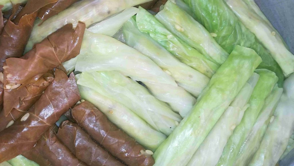 وبعده نشكل حبات الملفوف وورق العنب وبس نجهزهم نحط عليهم رب البندوره وملح ومي ونخليهم يستوي…..