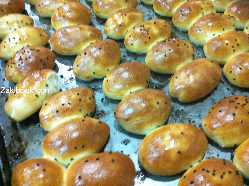 – ندهن وجه المعجنات بالخلطه الاخيره ونزين الفطاير بالسمسم او الحبه السمرا عندما ننتهي. من التزيين وقبل الخبيز نغطي سدر الفطاير بكيس نايلون ما يقارب العشر دقايق كي يتخمر بزياده وتتكون عجينه هشه نخبزها عدرجة عاليه من الحراره بعد الخبيز. ندهن وجه الفطاير بقليل من الزيت والف الف الف, صحه وهنا.