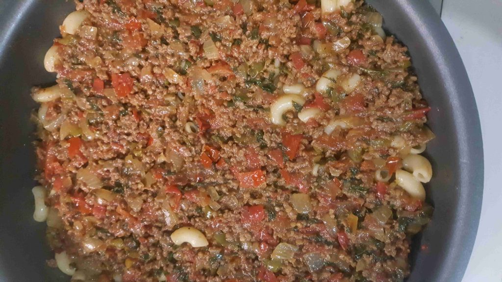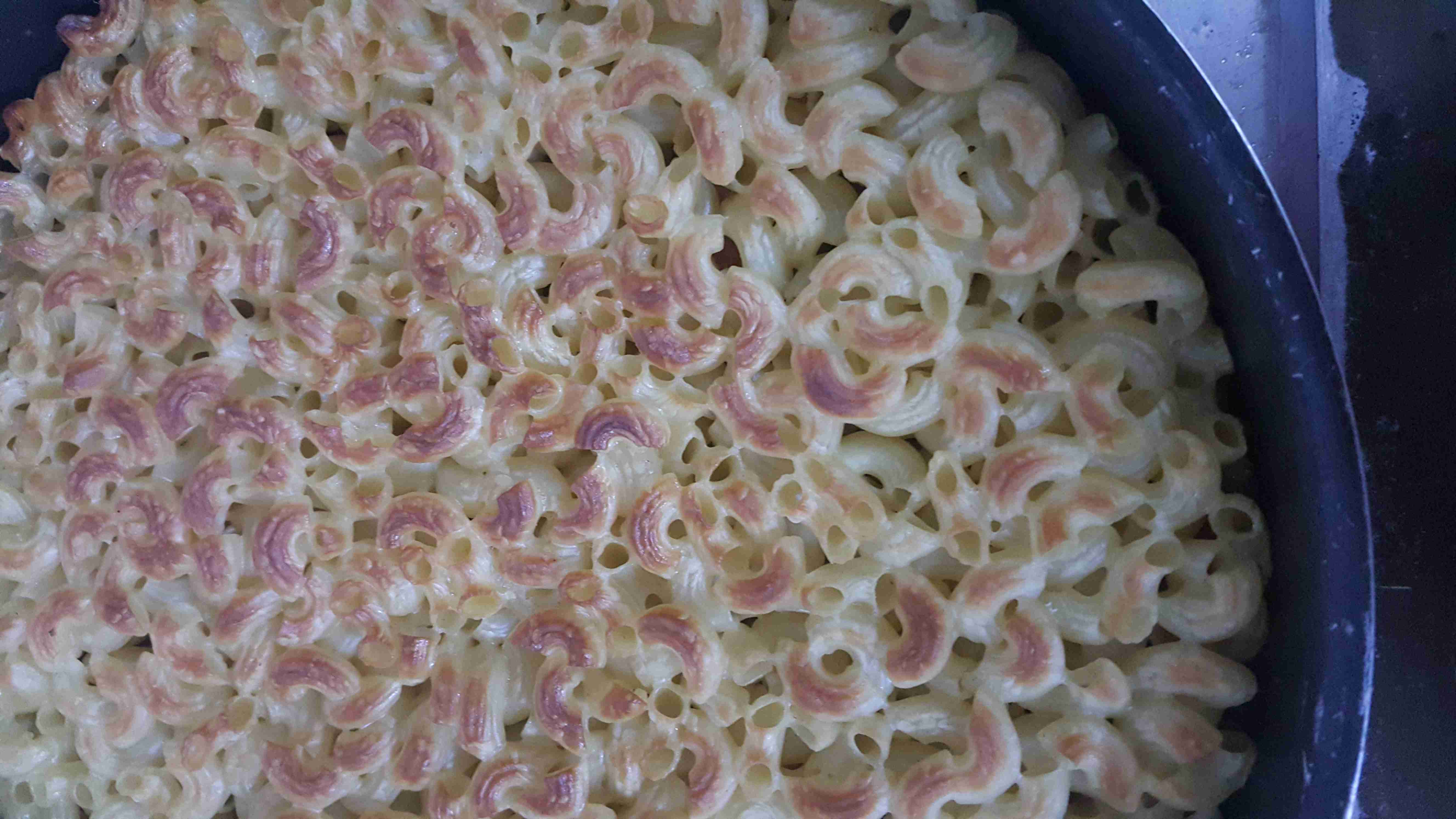 لان في تبسي تيفال نضع القليل من الزيت ثم نضع نصف المكرونه وثم الحشوه ثم النصف الاخر من المعكرونه