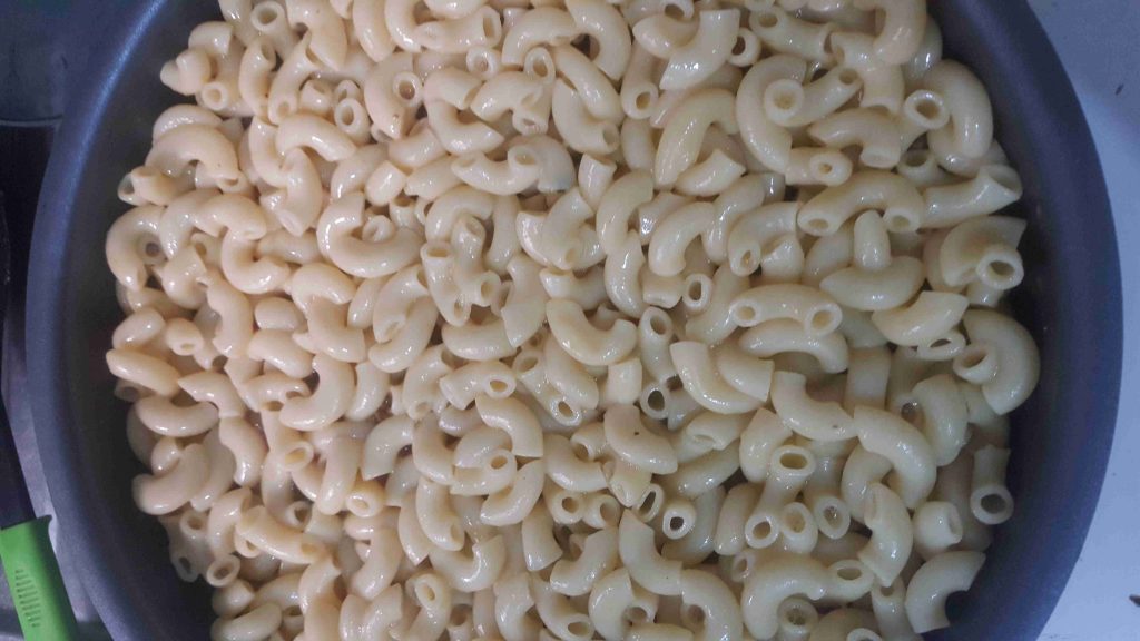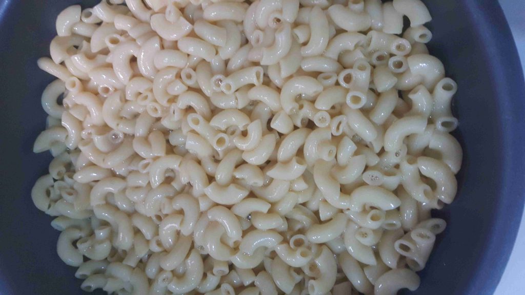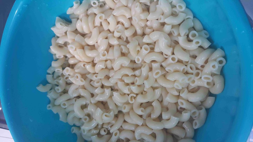 نسلق المعكرونه بالطريقه المعتاده وبعد ماتستوي نصفيه ونضعه على جنب
