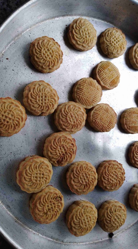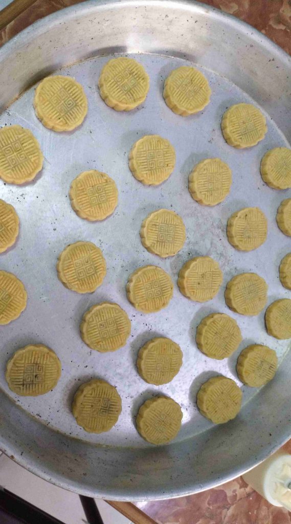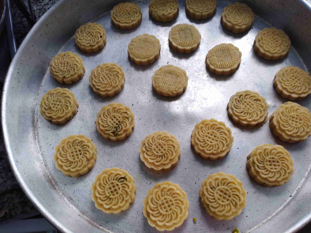 يبس السميد بالزبده والسمنه ويحرك باطراف الاصابع ويترك ليله كامله وتاني يوم بتضيفي باقي المكونات وبتعجني لحد ما تصير عجينه قابله للتشكيل