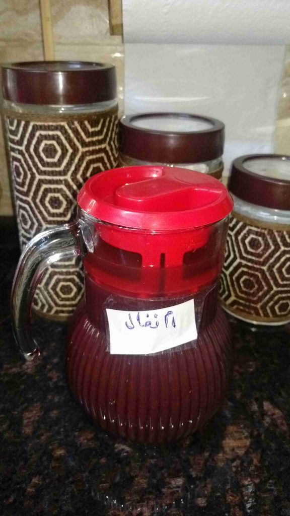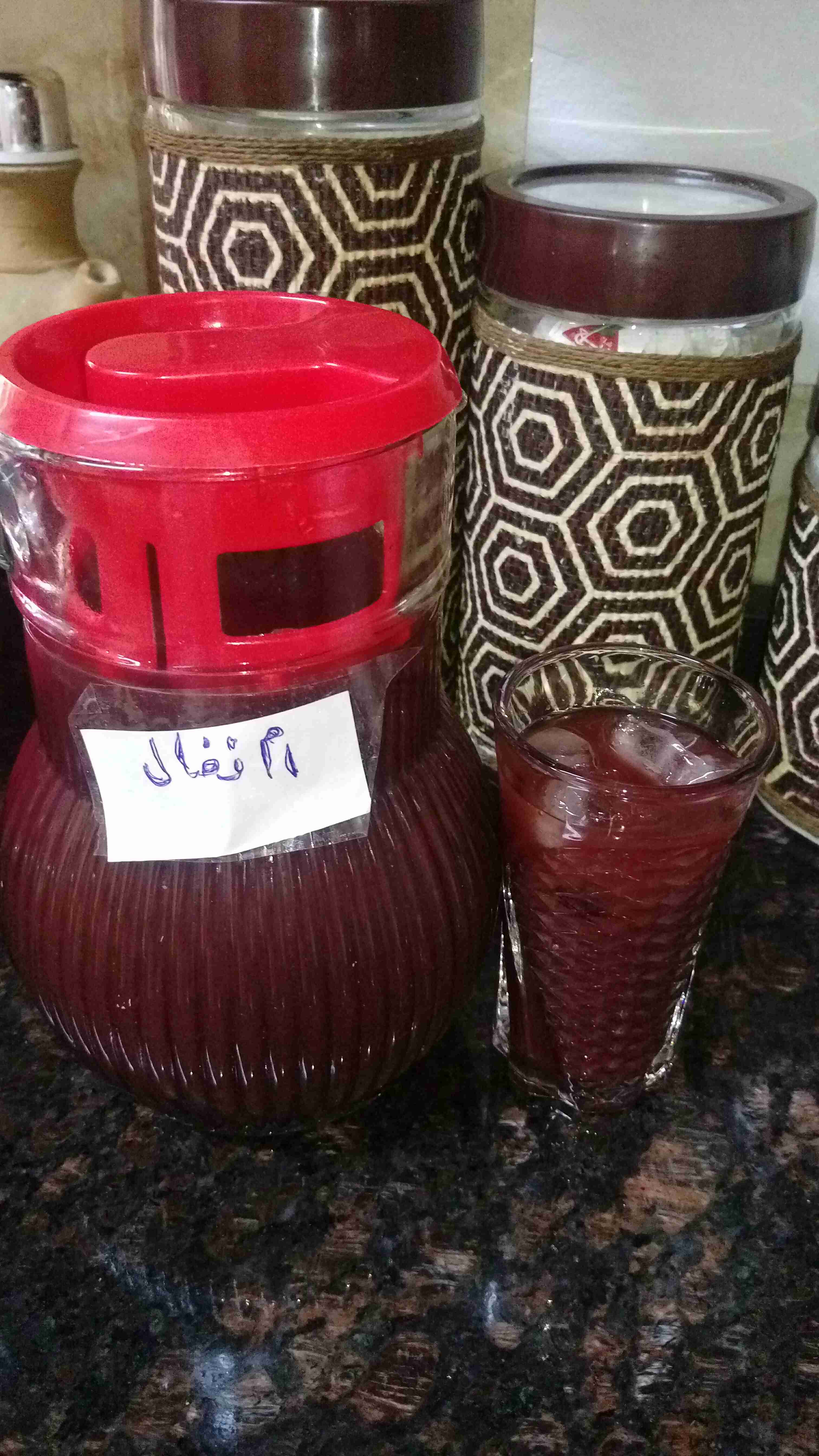 نضعه في الخلاط الكهربائي ثم نصفيه بمصفاة منخل ونضيف له بعض قطرات صبغة الجلاب ونضعه في الثلاجة ونقدمه مع مكعبات الثلج ..