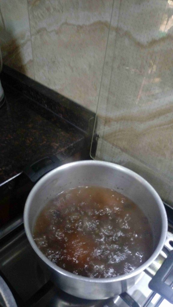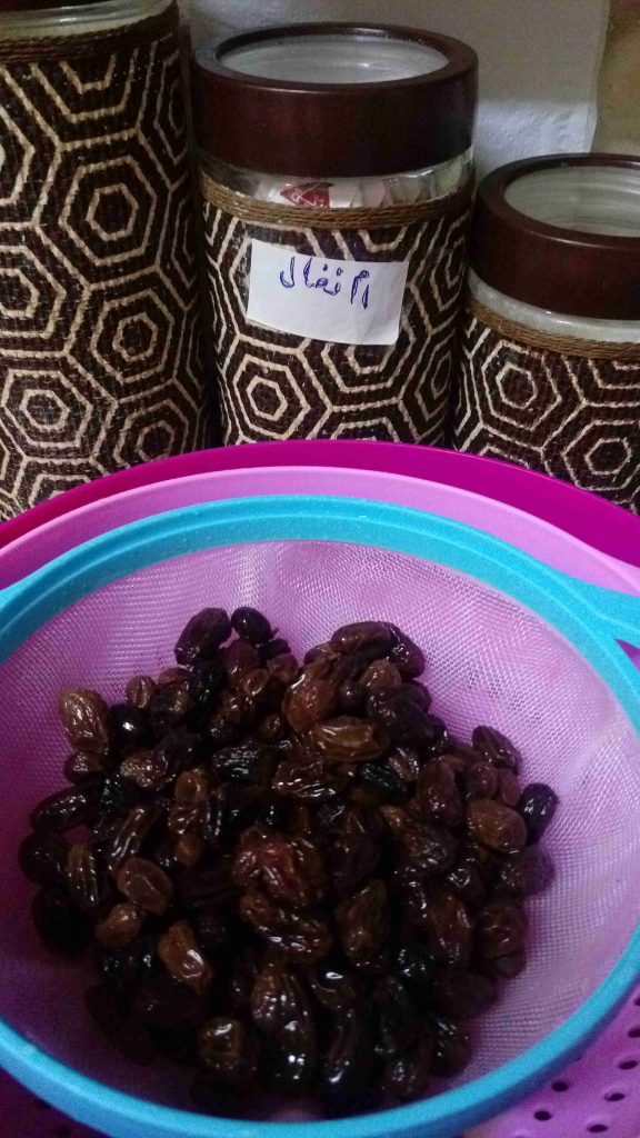 ثم نضيف له السكر حسب الرغبة لانه الزبيب حلو ونغلي الزبيب لمدة نصف ساعة .ثم ندعه يبرد