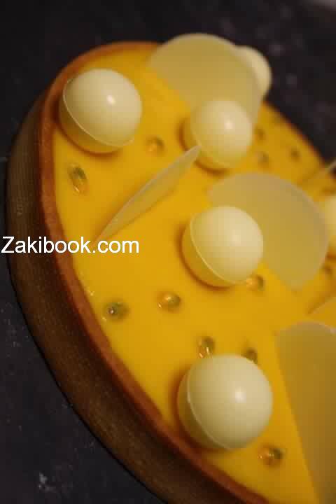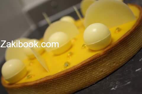 هنحط كل المكونات على حمام بخار مع التقليب المستمر هتلاقة استوى وقوامة تقل معاكى يصب فى التارت اللى احنا جهزناة مسبقا وممكن نفنشة زى الصورة او ياخد مارينج من على الوجة حسب الزوق.