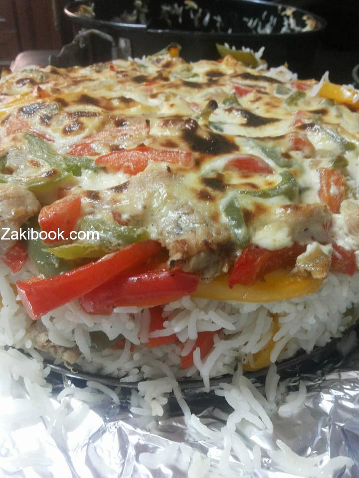 طريقة عمل طبقات الأرز مع الدجاج والخضار بالصور
