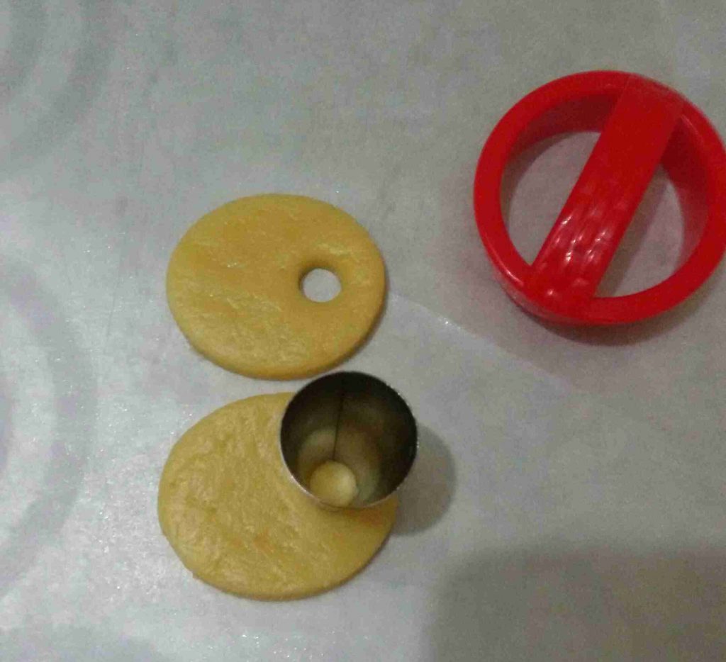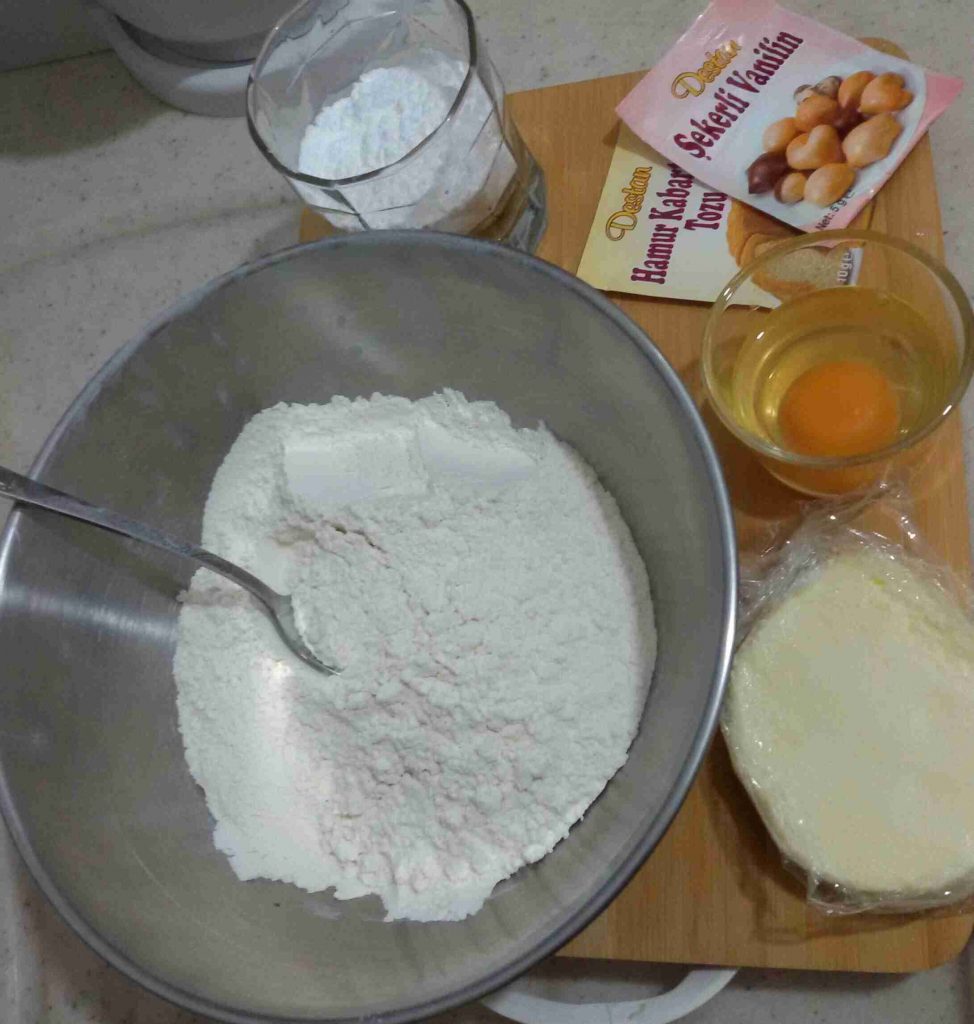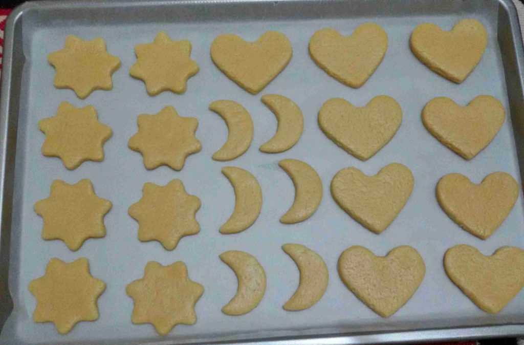 منخفق الزبدة اللينة لتصير كريمية ومنضيف الها السكر البودرة والفانيليا ومنخفق ليندمجو تماما ويصير خليط فاتح منضيف البيضة ومنخفقها منيح وبعدا المكونات الجافة بدون مانعجن بس منلم العجينة لم ومنغلفها ومنحطها بالبراد نص ساعة لتتماسك تمام وبتصير جاهزة للتقطيع والشوي على درجة حرارة 160