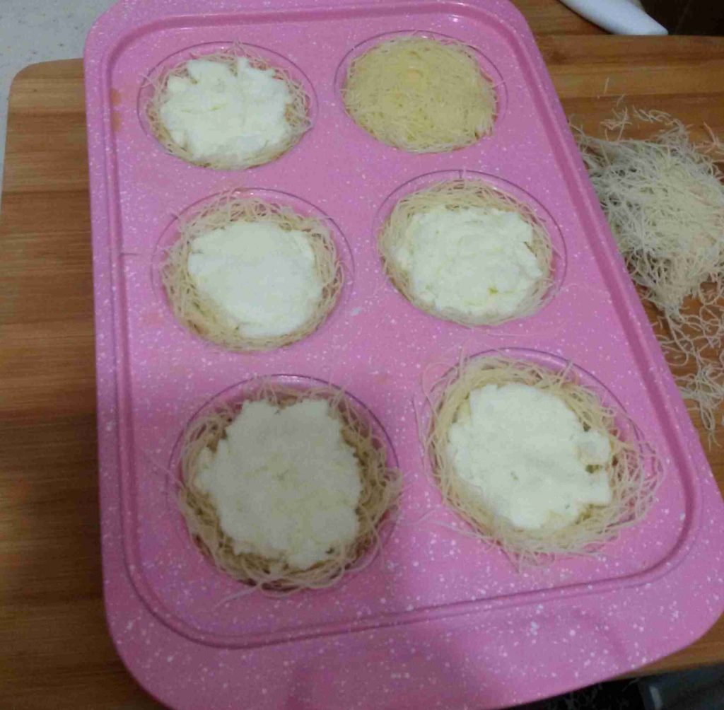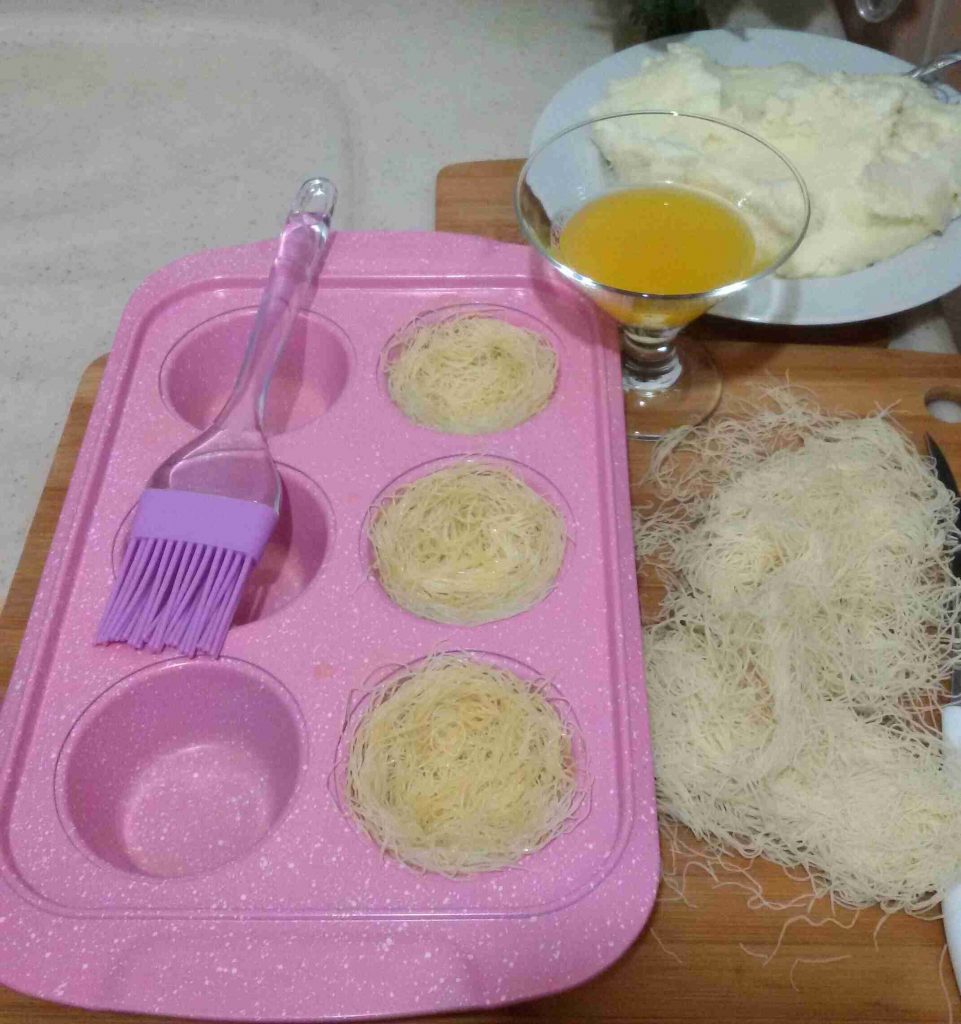 - مقادير كب كيك الكنافة المحشية بالقشطة