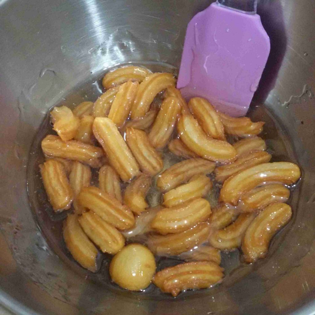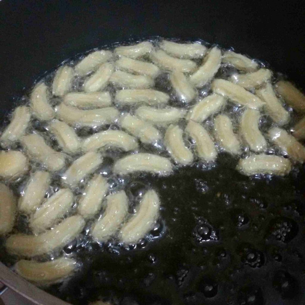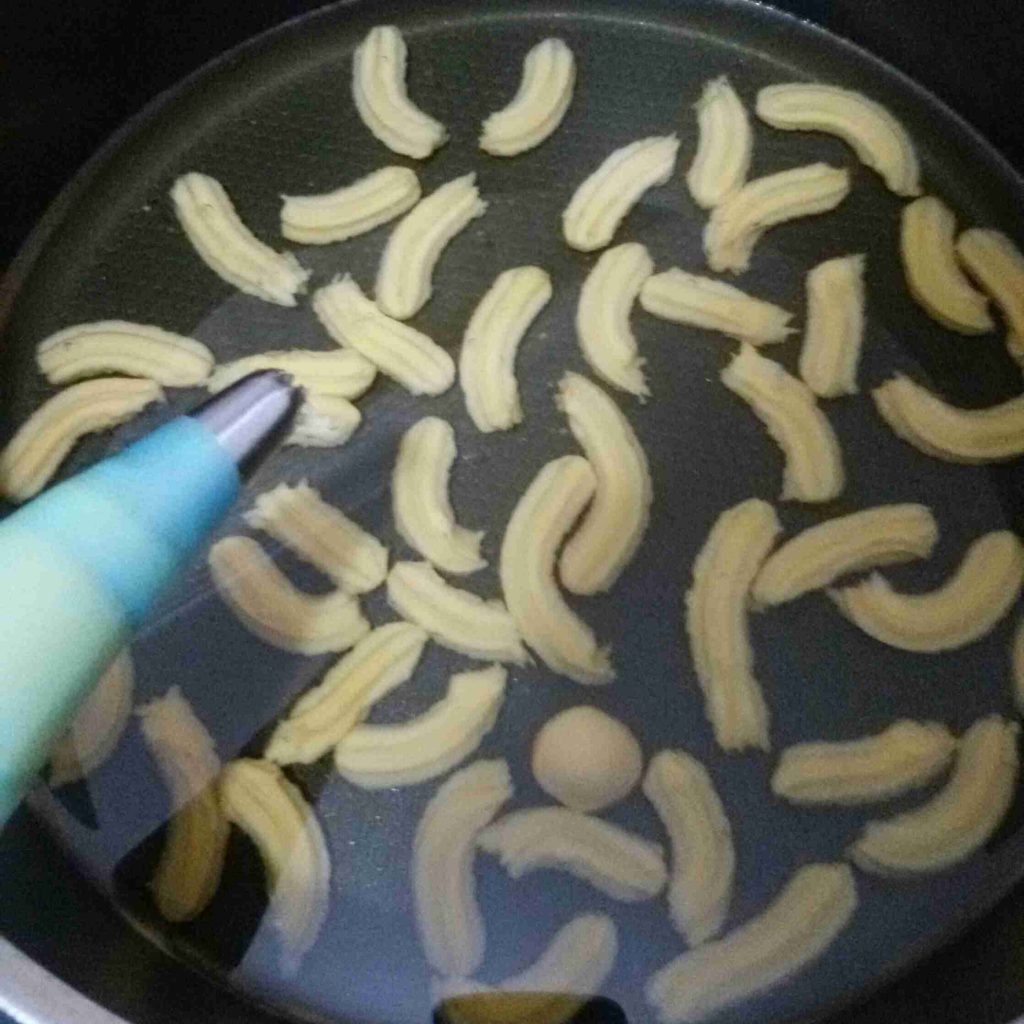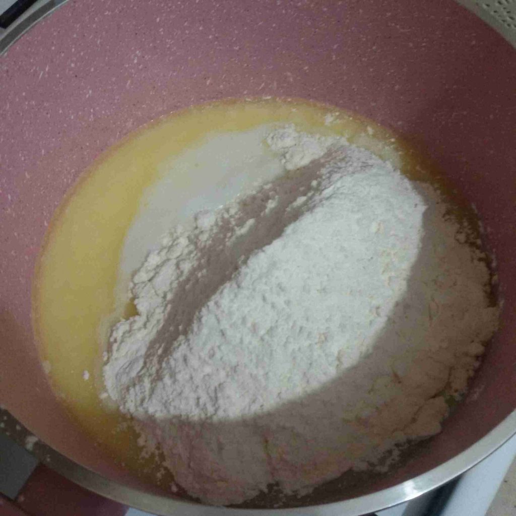 منحط الزبدة والحليب والمي ورشة الملح عالغاز وبس يسخنو منضيف الطحين ومنحرك بسرعة لتتجمع العجينة على بعضها ومايبقى شي عالاطراف منشيلها عن النار ومنستنى لتروح سخونتها شوي منضيف البيض بيضة ورا التانية ومنخلطها منيح لتختفي البيضة ومنعبيها بكيس ومنحطها بزيت باااارد وبس نخلص تشكيل منشغل النار عالواطي لحتى تطلع عنا الحبات لفوق وتنتفخ شوي منقوي النار ومنقلب شوي شوي لتتحمر منشيلها فورا على قطر بارد وتقيل..