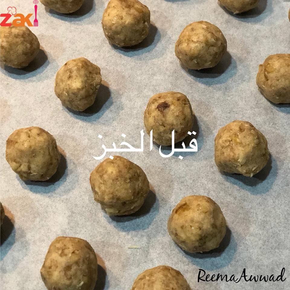 -نأخذ كمية بسيطة من الخليط ونشكل كرة بخفة بين راحة اليدين بدون ضغط ونضعها في صينية عليها ورق زبدة.