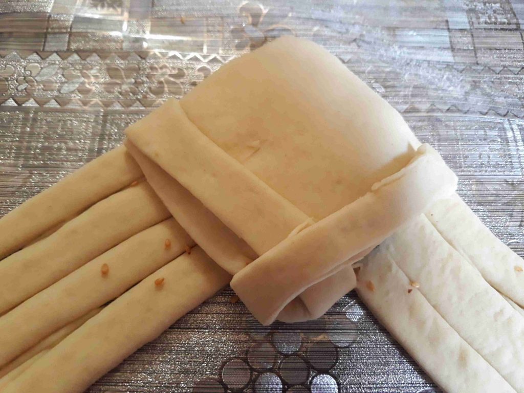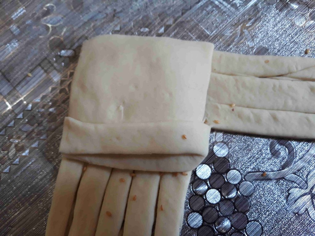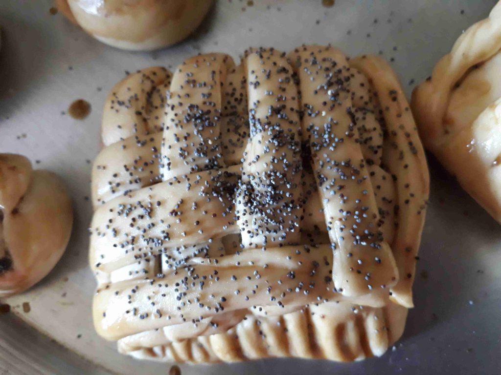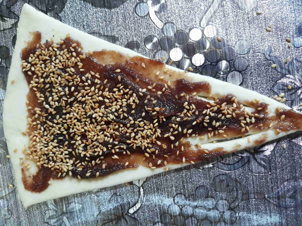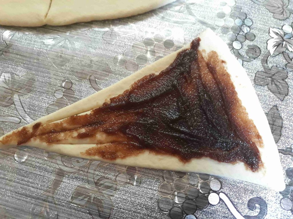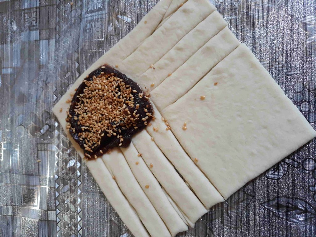 بوعاء العجن بنضيف الخميره ورشه سكر ونص كوب مي دافيه وبنخلطهم وبنتركهم يخمرو وبس تتفاعل الخميره بنضيف باقي المكونات وبنضيف الماء بالتدريج مع استمرار العجن لما تسير عنا عجينه ناعمه وطريه بنتركها يتضاعف حجمها وتخمر تقريباا ساعه الا ربع وبعد هيك بنقطع العجينه وبنرقها وبندهنها بمعجون التمر وبنرش عليها الكاكاو او السمسم وبنشكلها وبنصفها على صينيه الفرن المدهونه زيت وبنترك العجينه كمان مره بعد التشكيل تختمر ويتضاعف حجمها وقبل الخبز بندهنها بخليط التلميع بنراعي عدم الضغط عليها منشان نحافظ على شكلها وبنرش عليها السمسم او بذور الخشخاش وبنخبزها بفرن حامي مسبقاا على درجه 180 لمده ربع ساعه تقريباا حسب الفرن لما يسير لونها ذهبي بنطلعها من الفرن وبندهنها بالقطر