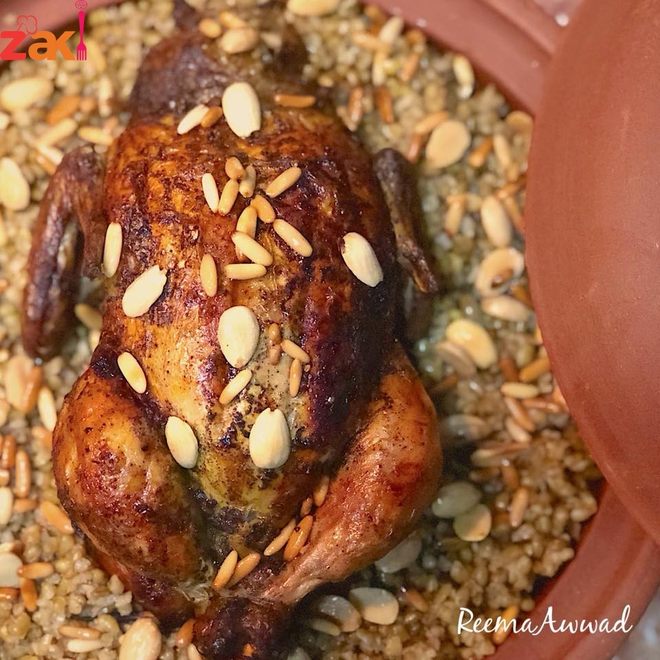 طريقة دجاج محشي فريكة وفريكة مفلفلة بالفخارة