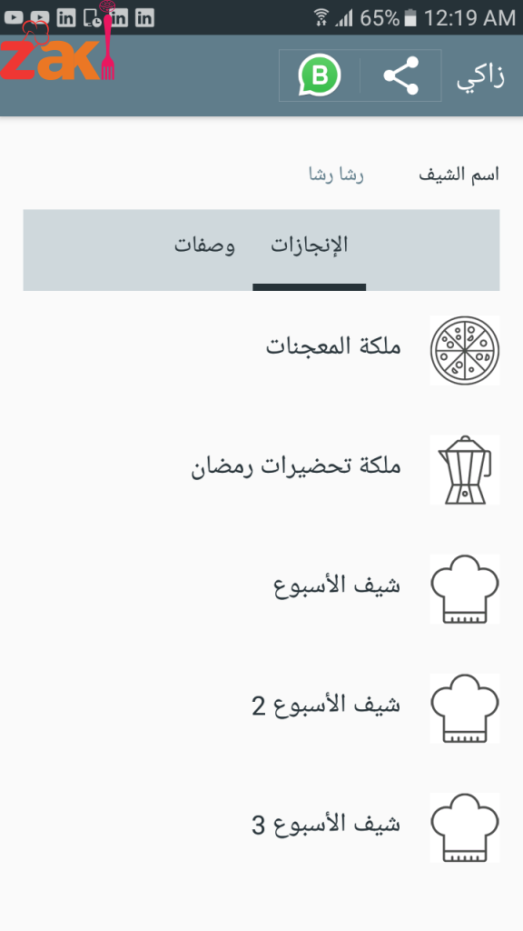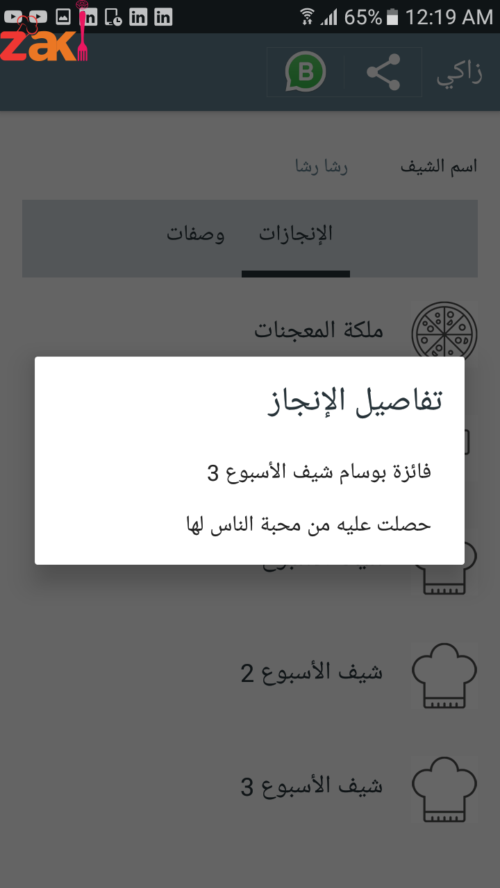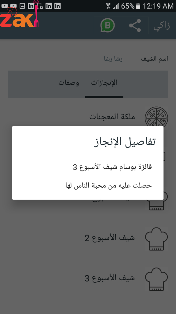 وفازت بلقب شيف الأسبوع الشيف رشا رشا كونها أكثر شيف تم تصفح ملفه على زاكي وحازت على وسام شيف الأسبوع للمرة الثالية على التوالي