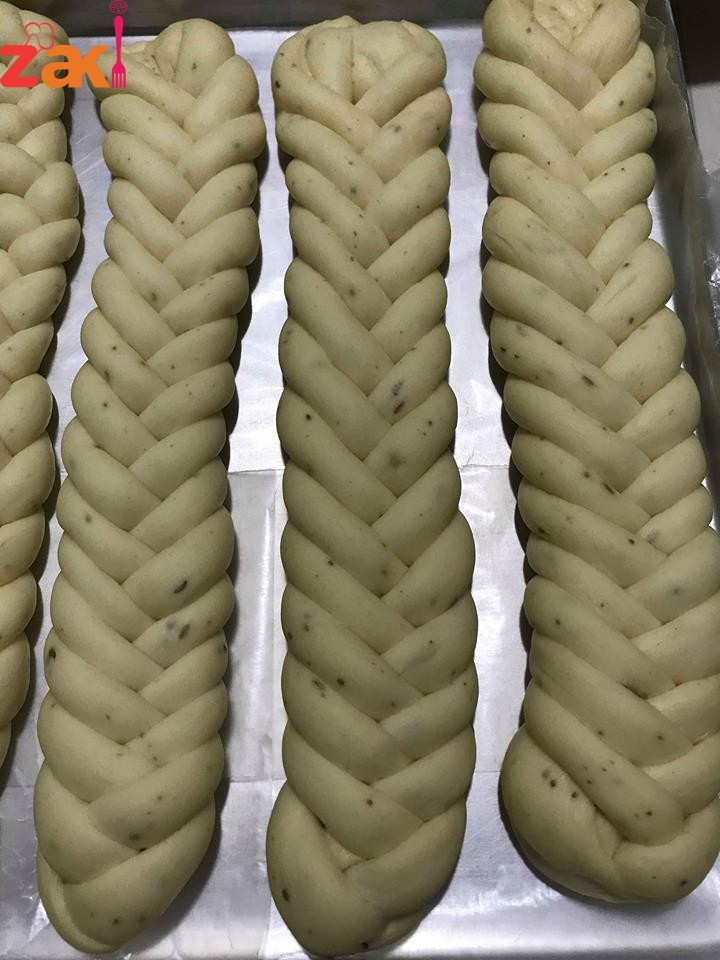 في اناء العجن يضاف أولا الحليب و الماء و السكر و الخميرة وبياض البيض الفانيلا ثم تخلط مع بعض بعد ذلك يضاف الزيت و الشمر رشة الملح وتخلط مرة أخرى ثم يضاف البيكنج باودر و الدقيق بالتدريج تعجن العجينة جيدا ثم تضاف اليها الزبدة و تعجن ل 10 دقائق ثم تغطى وتترك لتتخمر حوالي ساعة