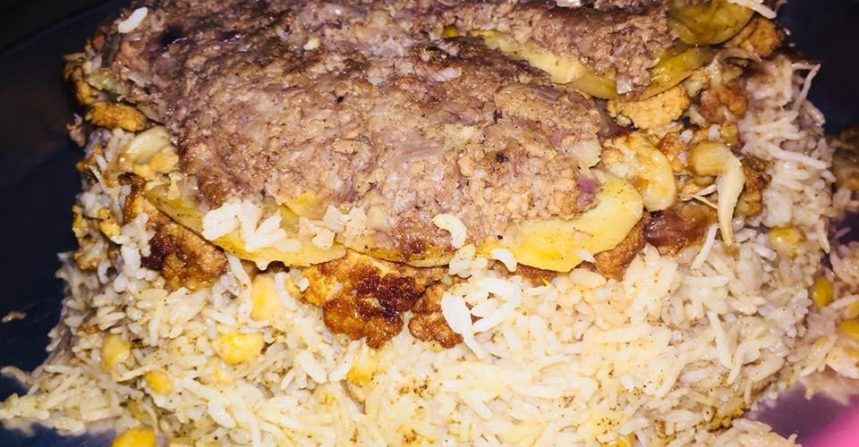 طريقة قالب المقلوبة باللحمة المفرومة