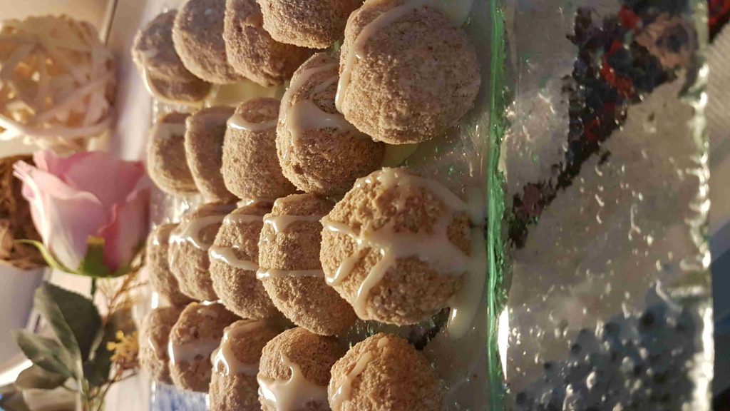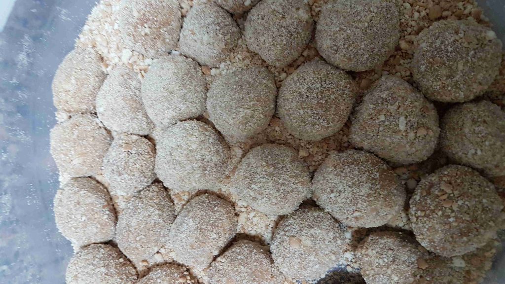 توضع في إناء وخلطها مع الحليب المكثف وبعدها تشكيلها كور