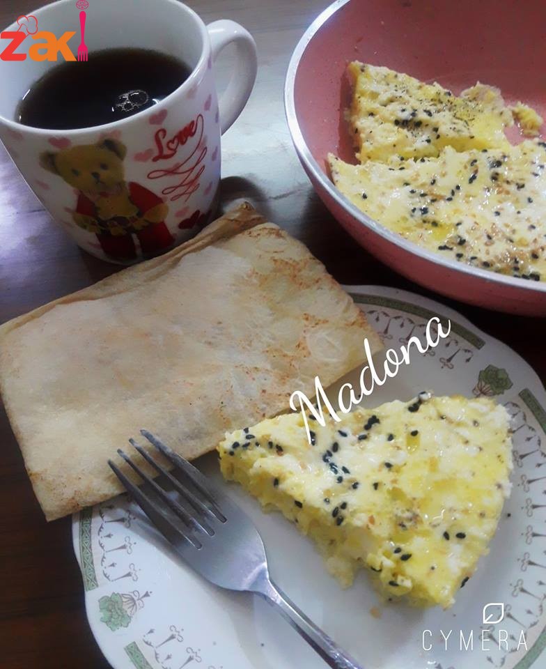 ونضع الزيت والزبده بالمقلاه عالغاز ..ونضيف مزيج البيض ونغطيه ونخفف النار ..