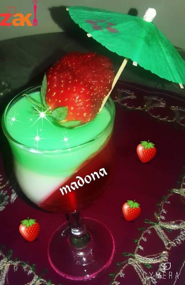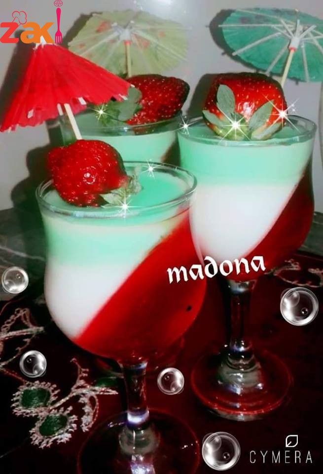 توضع الاكواب بالزبديه بشكل مائل ويضاف اليها لجيلو . وتترك في البراد ..3 ساعات حتى تجمد
