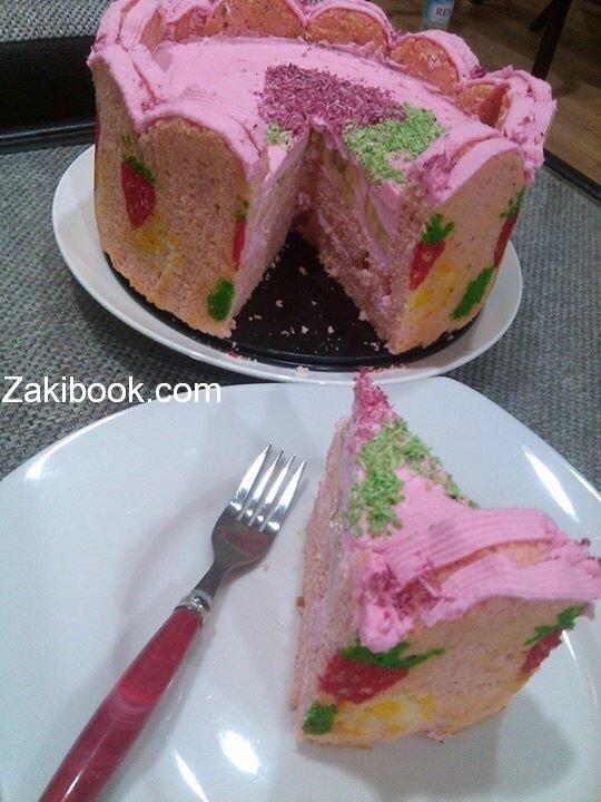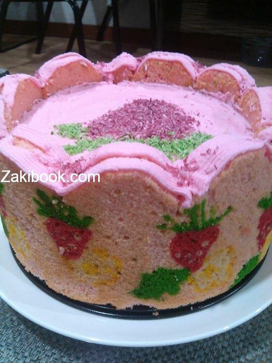وتكملي الرسمة واخيرا تصبي خليط الكيك …انا لونتو بالوردي.
