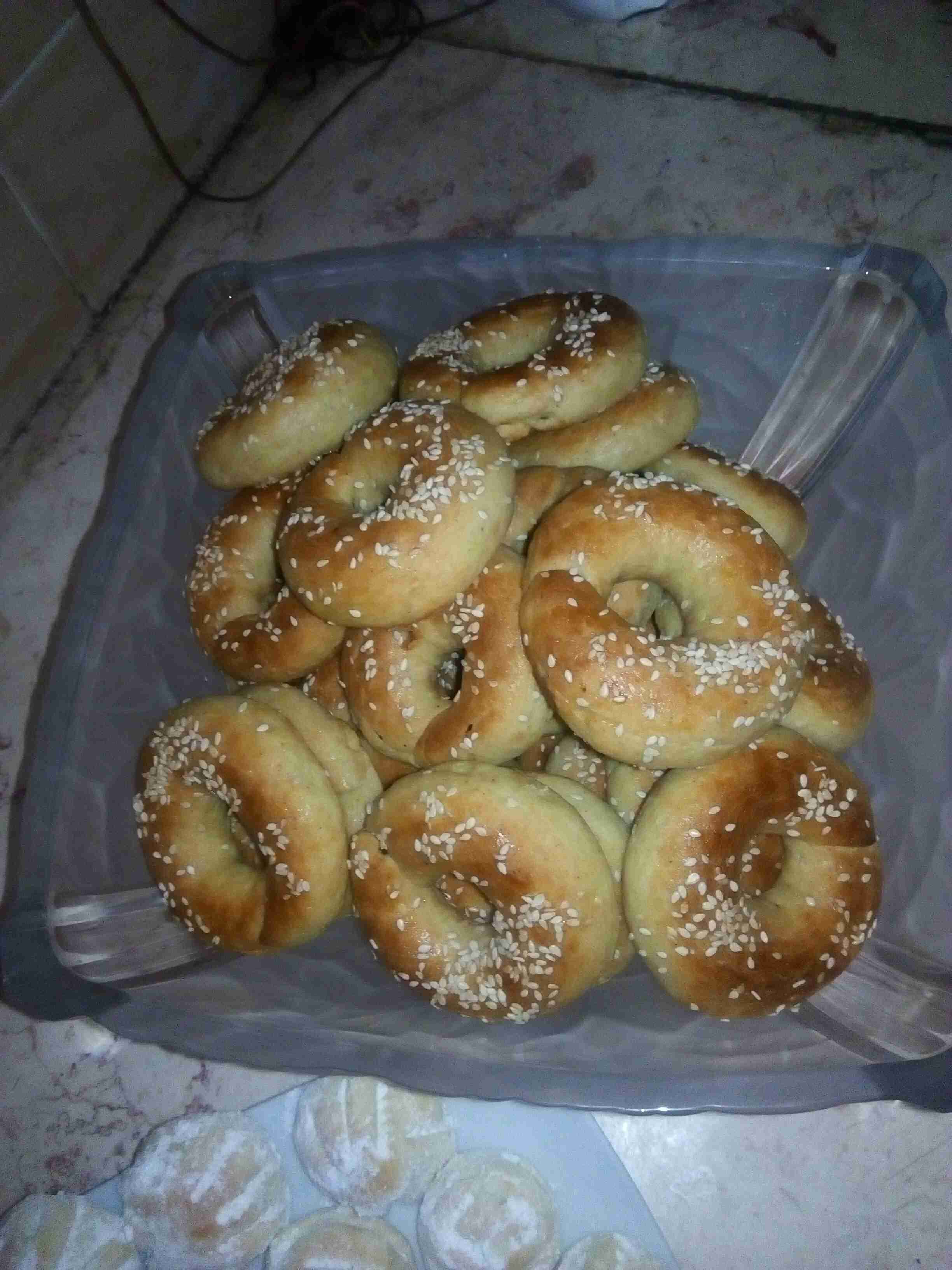 نضع جميع المكونات الجافه بوعاء ونضع السمنه ونبسها جيدا ثم نضع بكوب الخميره و م ك سكر وماء فاتر ونغطيها شوي ثم نضعها عالطحين ونعجن بالتدريج مع اضافة الماء الدافئ حتى تتسكل عجينه ونغطيها حتى تخمر ثم بعد ان تخمرنشكلها ونحشيها تمر ثم ندهنها حليب ونرش سمسم ثم بالفرن180 ثم نحمرها