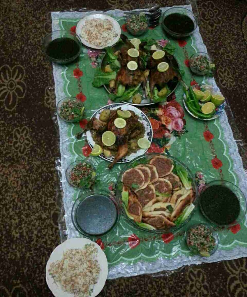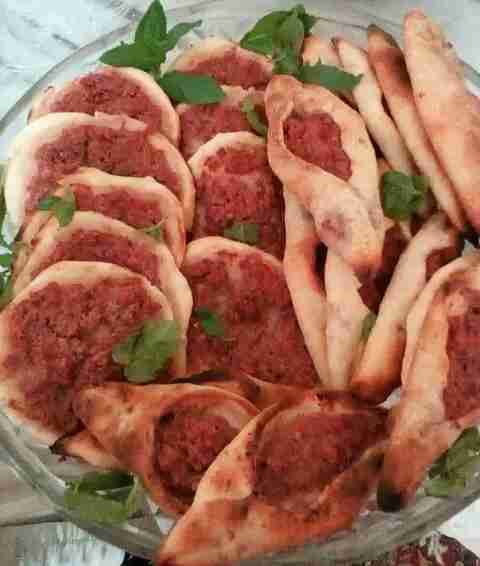 بنحط بالخلاط البندوره والفلفل والبصل والتوم ومعلقة الطحينيه ودبس الرمان والبهار والفلفل والسماق وبنخلطهم وبنظيفهم عاللحمه المفرومه وبنملحها وبنتركها تتصفى
