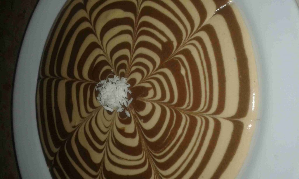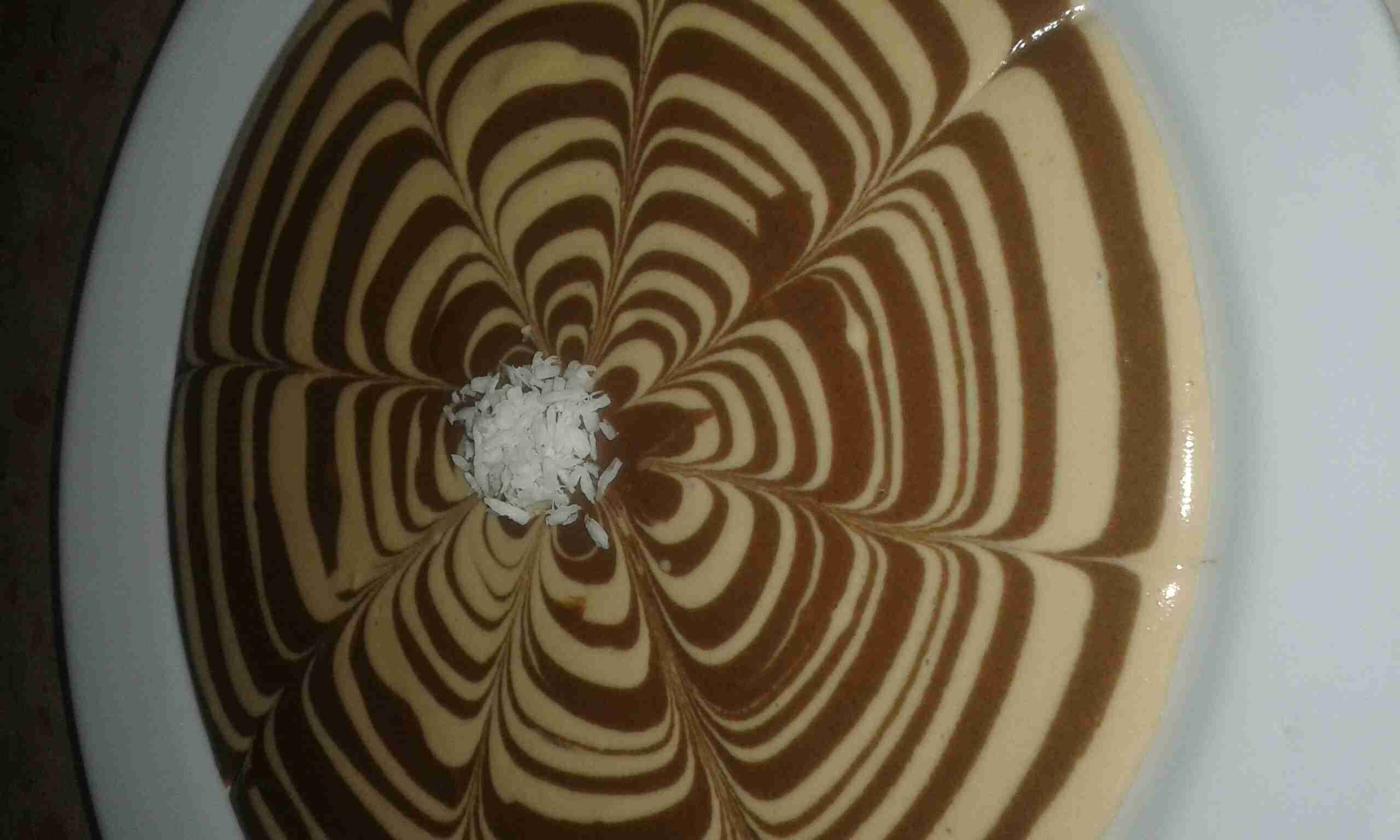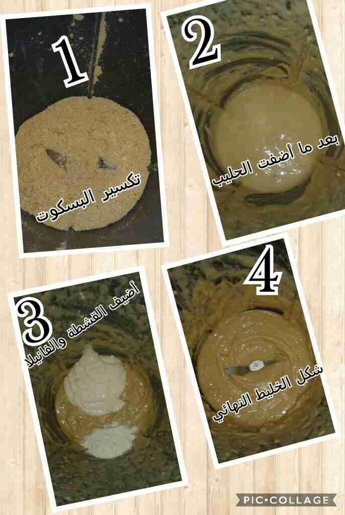 نكسر البسكوت بالخلاط ثم أضيف عليه الحليب بالتدريج واخلطهم ثم أضيف القشطة والفانيلا واخلطهم وهيك يكون الخليط جاهز أخذ نصف الخليط والنص الثاني أضيف علية كاكاو وسكر وشوية حليب واخلطهم هسا راح نقدمة بطبق التقديم أضيف ملعقة من خليط الكاكاو وملعقة من خليط الفانيلا على شكل طبقات وهكذا لم تخلص الكمية وبعدين راح ازينهم بحركة بسيطه أجيب سكين واعمل خط من بداية الطبق لنص وهيك تكون حلاوة البسكوت جاهزة وازينها بجوز هند ( اختياري) وااااالف صحه وهنا ♡