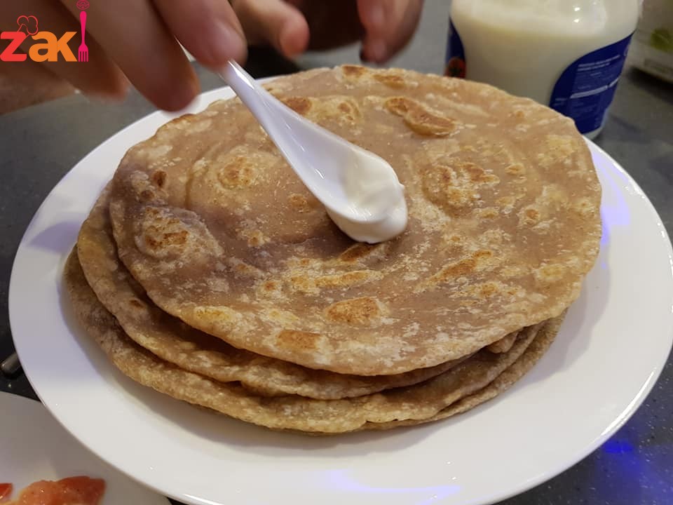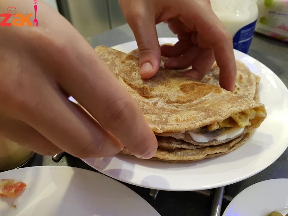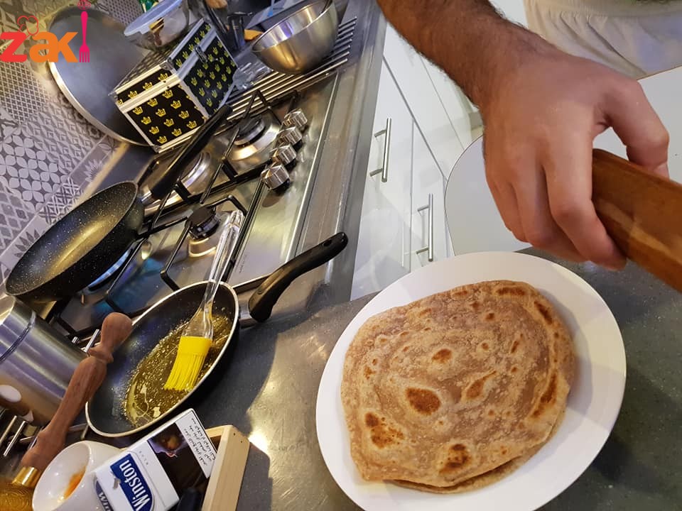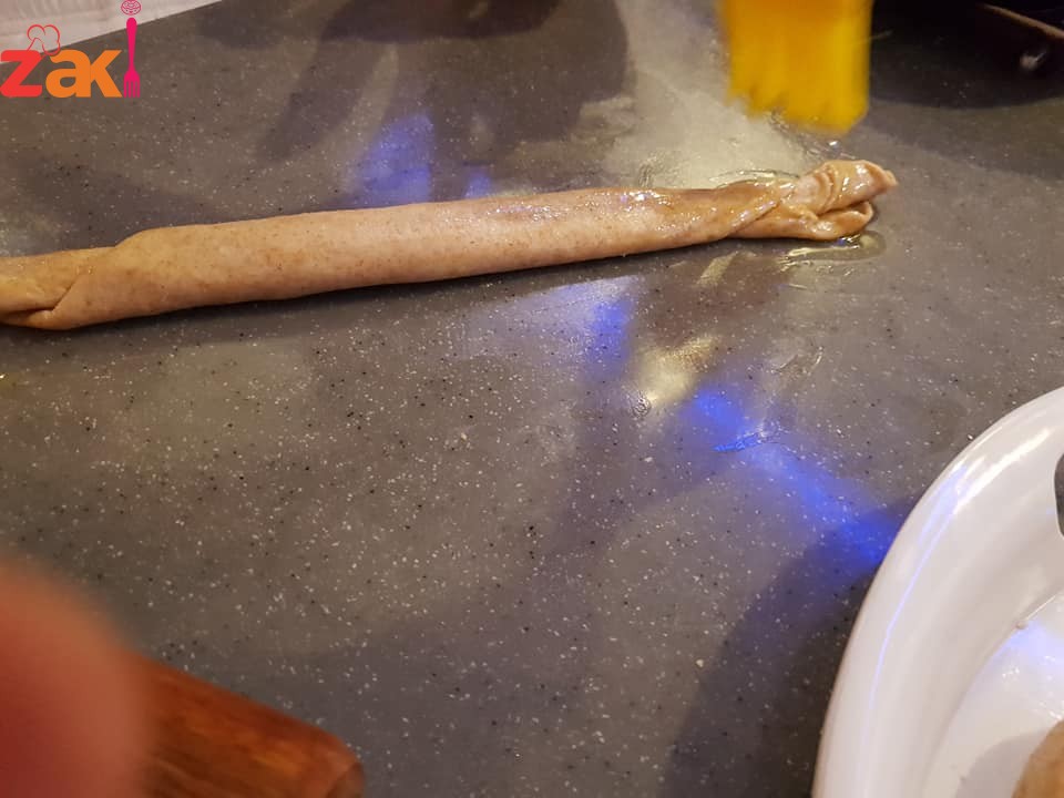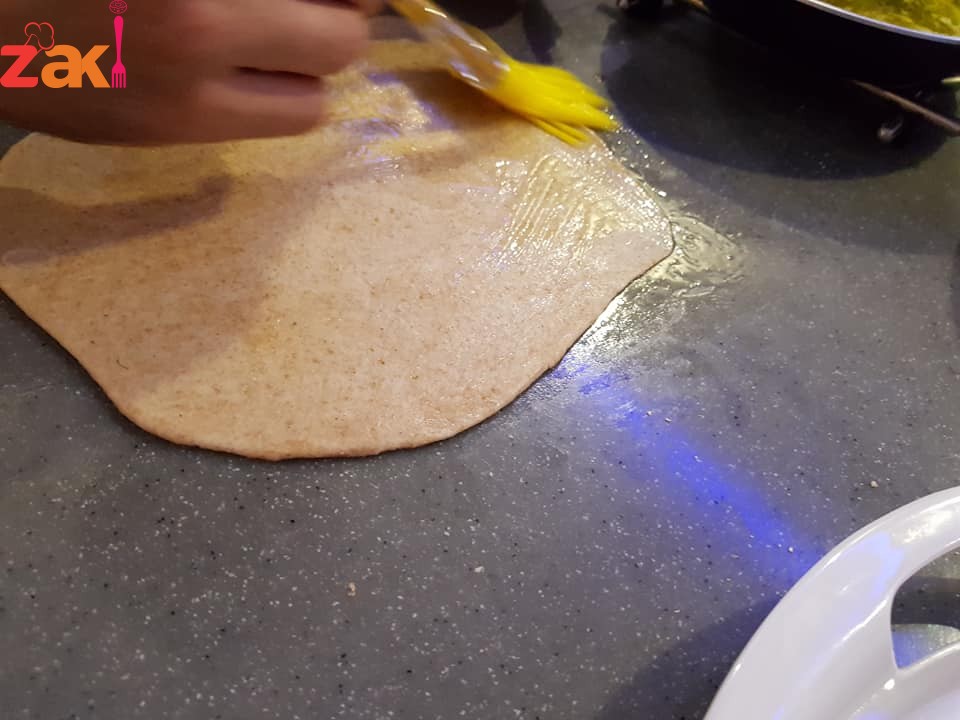 نفردها بالشوبك وندهنها بالزبده ونلفها على شكل رول