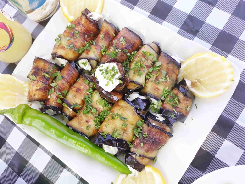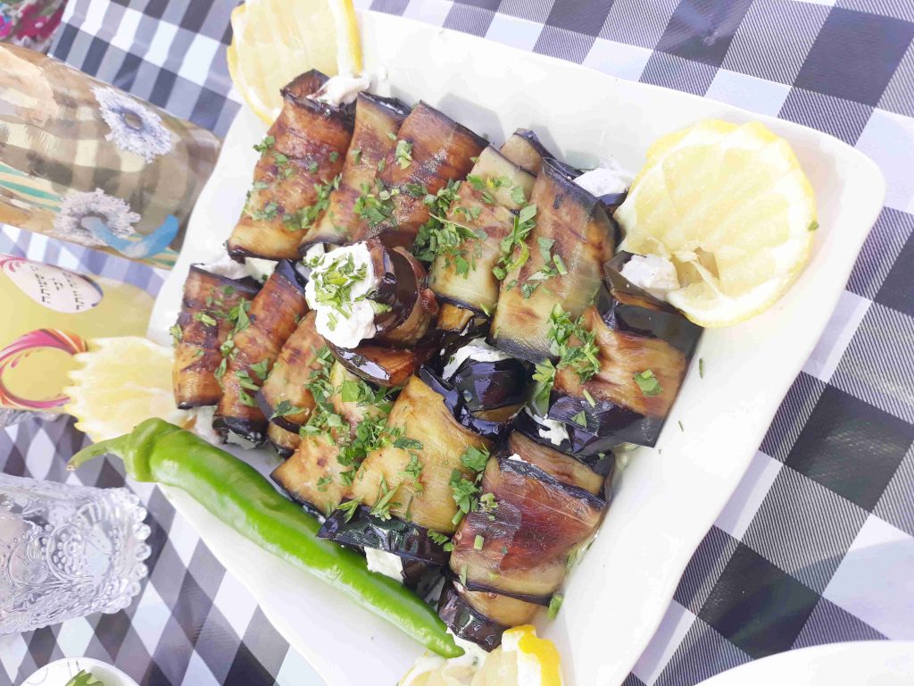 لفائف البيذنجان باللبنه واكواب القرع المحشيه باللحمه المفرومه طيبه وشهيه
