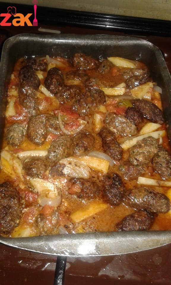 بقلي الكفته نص قليه بعد ما اعملها اصابع او كرات وبقلي حبة بطاطا شرحات نص قليه بعدين بفرم بصله جوانح وقرن فلفل حار وبعصر بندوره حسب الكميه وبحطهم فوق بعض مع البهارات وبقصدرهم ليستوا ما بتاخذ وقت لان البطاطا والكفته مقليات ومتحمرات من الجهتين نص قليه وصحتين