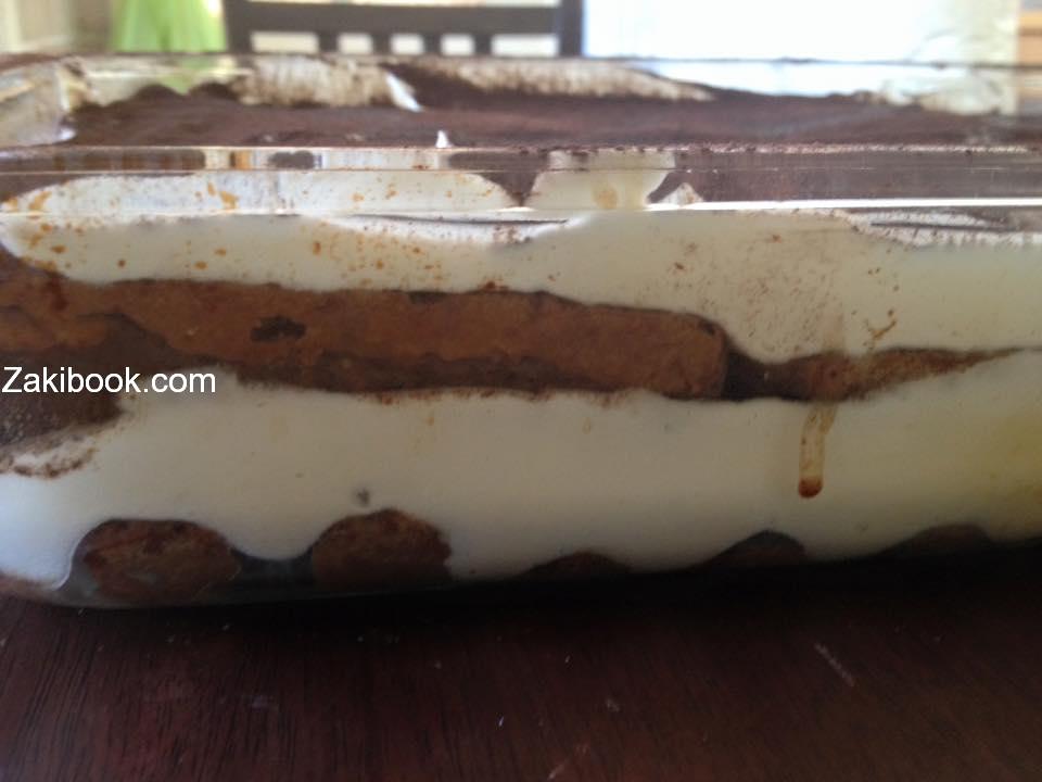 التيراميسو تلك الحلوى الايطالية التي نالت شهرة عالمية كيف لا و طعمها ورائحتها لا تقاوم, وسميت بهذا الاسم لأنها تملئ الجسم بالطاقة و الحيوية ما يضفي احساس بالسعادة, صديقة زاكي المميزة Amina Mechai  كما عبرت عن وصفتها: ” حلو راقي ايطالي عملت حجم عائلي لمحبي مذاق القهوة و مرارة كاكاو و عذب موس الماسكاربون