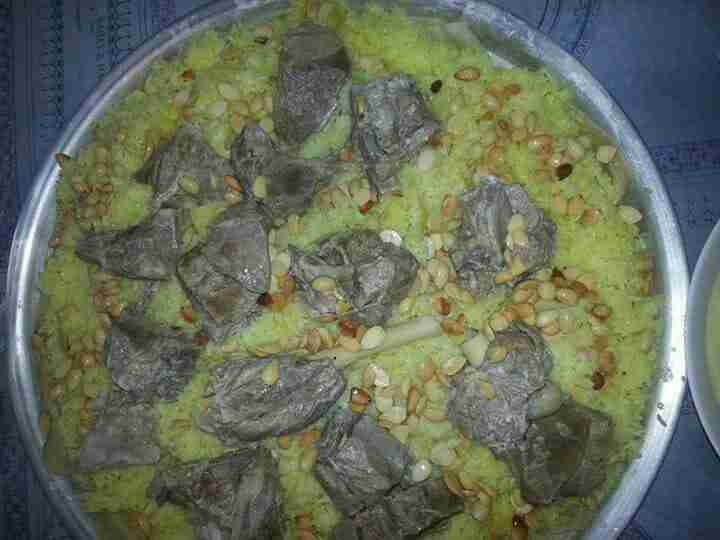 نقع اقراص الجميد بالماء لمدة ثلاث ساعات ونقع الرز ثم نضع اللحم في طنجرة وعليه ماء ونضع عليه ورق غار وهيل وبهارات نغطي الطنجرة لحتى الاستواء ثم نصفي لبن الجميد ونضع عليه من مرق اللحمة ونتركه يغلي على الغاز ثم نفلفل الرز بالزيت والملح والماء الساخن ونضع عليه الكركم علشان يتلون الرز ثم نحضر سدر ونضع عليه خبز الشراك ونشربه بلبن الجميد ثم نضع فوقه اللحمه المستوية والصنوبر المقلي واللوز ونشربه بلبن الجميد في ناس بحطوا بقدونس انا مابحبه وصحة وعافية للجميع