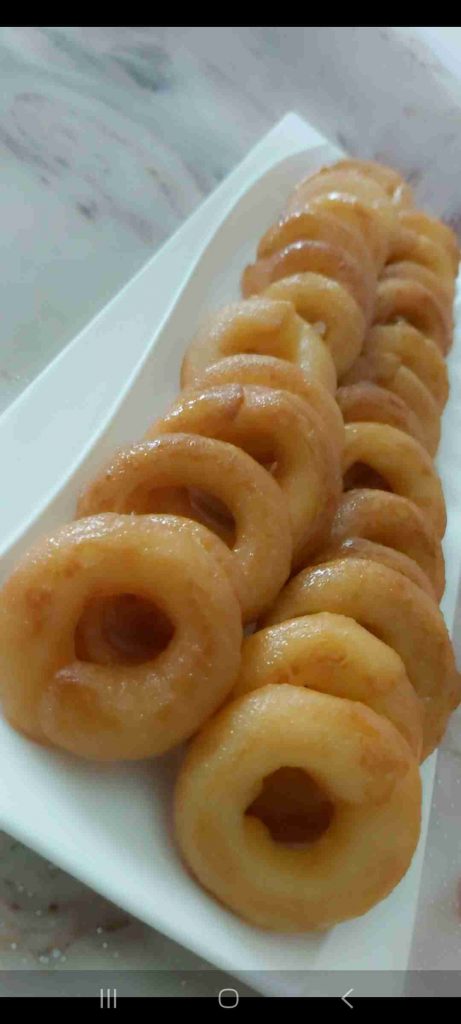 تقلى بزيت غزير الى ان تحمر كن الجهتين وتوضع مباشرة في الشيرة لمدة ٣ دقائق تقريبا …