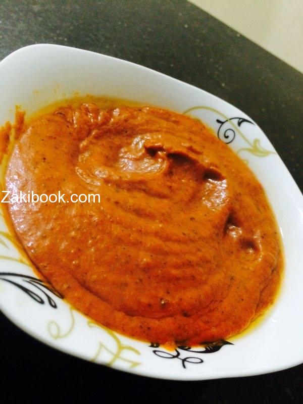 حوسي المكونات كلها سوا و حطي كوب ميه واتركيهن يغلو لتتكثف الصلصه و اطحنيها