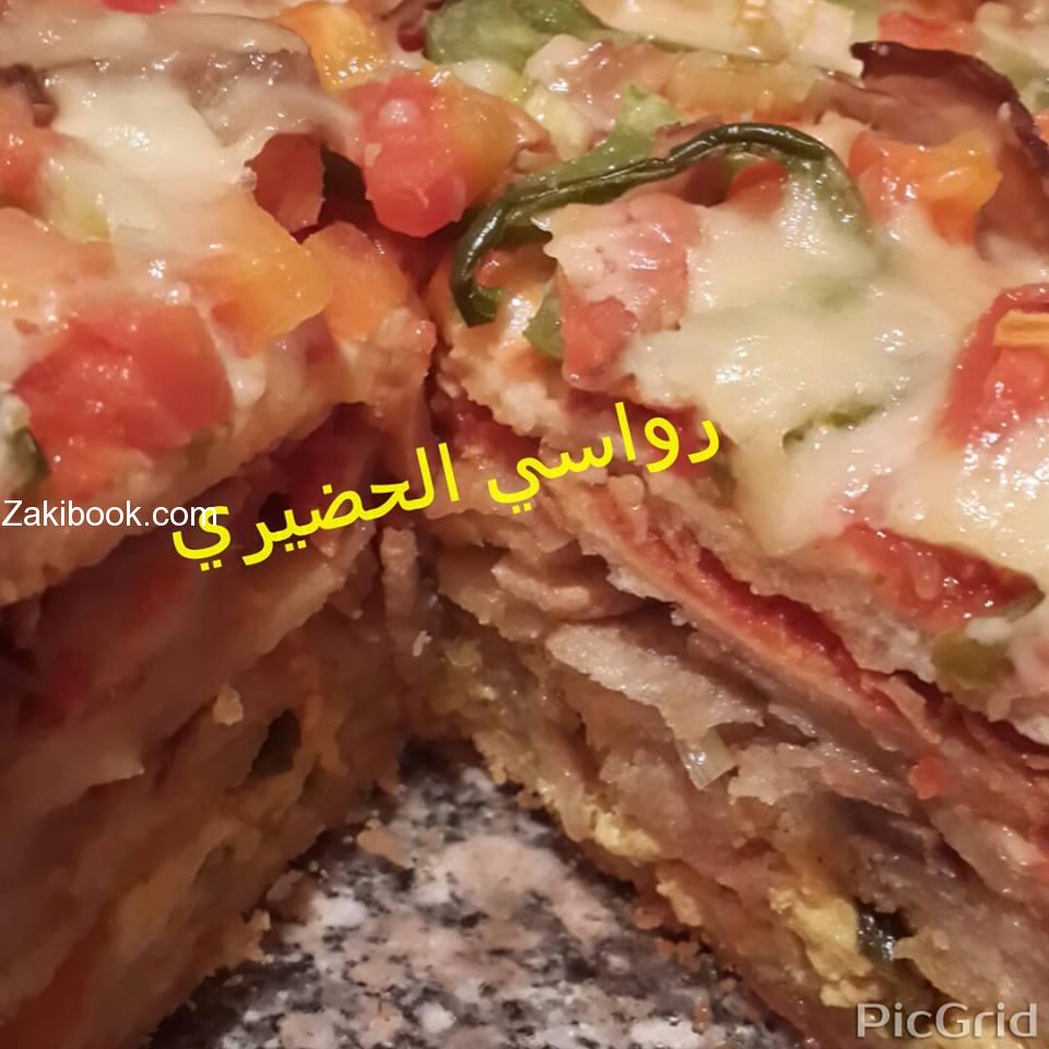 تورتة البيتزا طبقات من الجبنة السايحة ممم