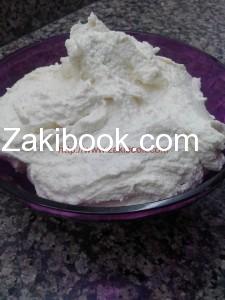 نخلط الحليب بودرة مع الماء (كل كوب حليب 1 لتر ماء) ، ثم نضعه فوق النار ، وعندما يصبح قريبا من الغليان ، نضيف له نصف كوب خل أبيض ، ويغلي قليلا ويبين المصل، يصفى الجبن ونضعه وهو ساخن في وعاء ، ويخفق مع 100غ زبدة مقطعة شرائح رقيقة ، مع إظافة علبة القشطة ، ونصف ملعقة صغيرة ملح ونخفق الكل حتى يصبح كريمة ، ونضعه بالثلاجة وصحتين ·