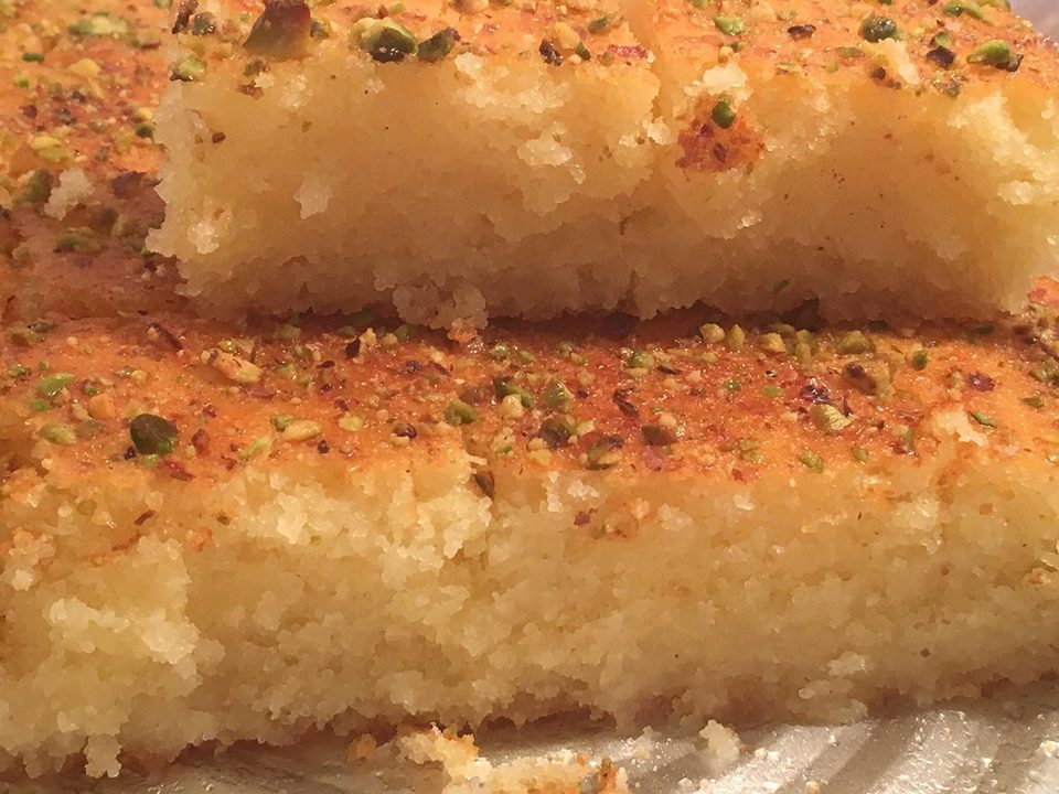 كأسه حليب حبه بيض ربع كأسه سكر نص كاسة سمنة ذايبه نص كاسه زبادي وا بنخلطهم شوي وا بعدين نضيف كأسه سميد خشن كأسه سميد ناعم ربع ملعقه فانيليا ملعقه اكل بيكنج بودر رشه ملح وا نخلطهم من جديد
