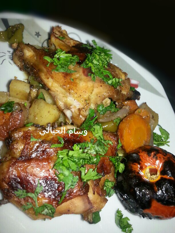 طبعآ (بدون اضافة ماي.لأن الدجاج والخضراوات حيذبون مايهم ويستوون بي).. واذا الفخاره بيها غطا غطيها